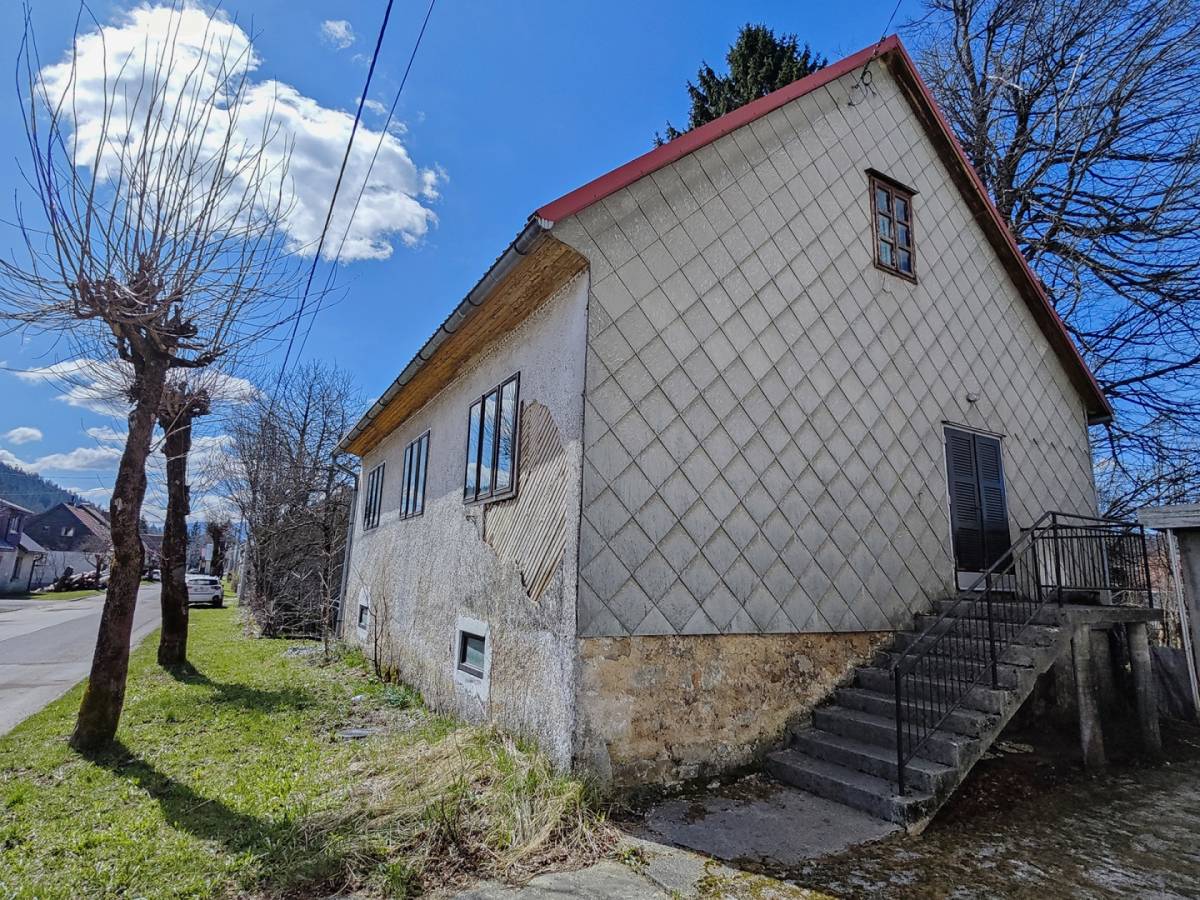 U samom centru Ravne Gore smještena je samostojeća kuća s tri etaže – podrumom, glavnom stambenom etažom i visokim tavanskim prostorom s mogućnošću prenamjene u dodatni stambeni kat.