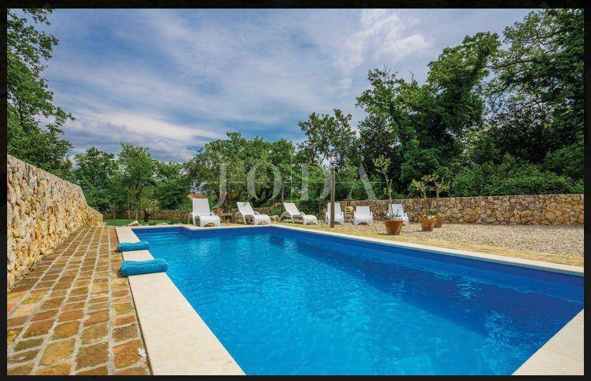 Otok Krk, okolica Šila, prodaja dvojne kamene kuće s bazenom.