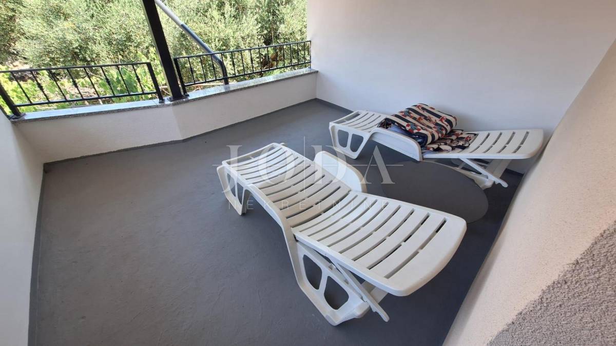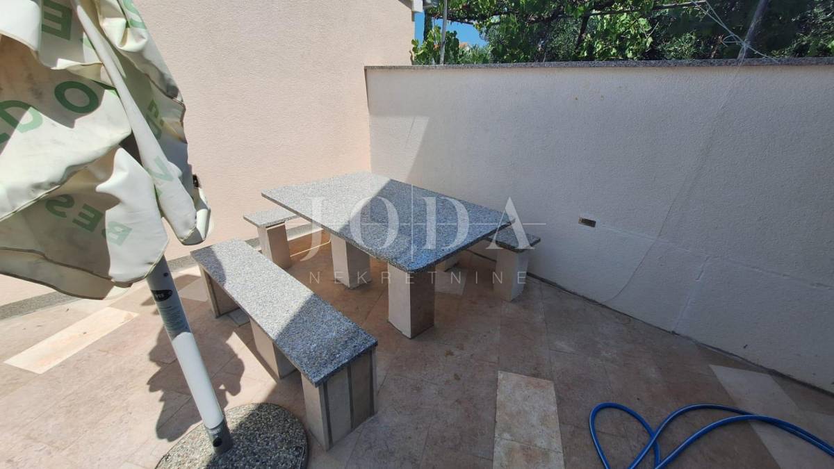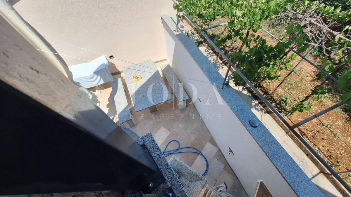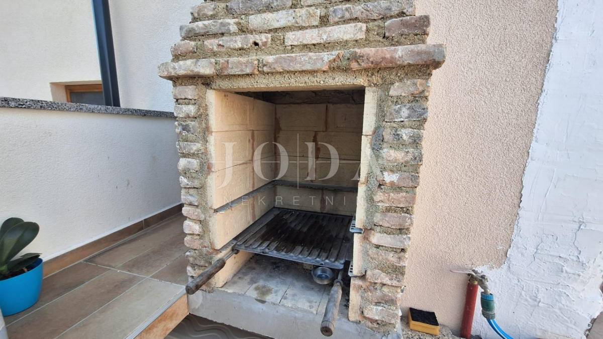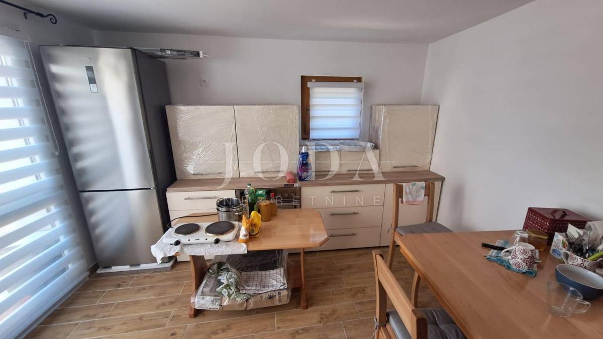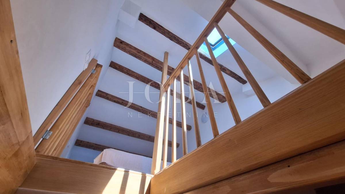 Kuća u nizu ima ukupno 77 m2 i sastoji se od tri etaže: prizemlja, kata i visokog potkrovlja. U prizemlju je kuhinja i blagovaona, dnevni boravak, spremište, kupaona. Na katu je spavaća soba i natkrivena terasa, dok je u potkrovlju kuće još jedna spavaća soba. Na okućnici se nalazi pomoćni objekt od 20 m2 uređen kao studio apartman te dva parkirna mjesta.