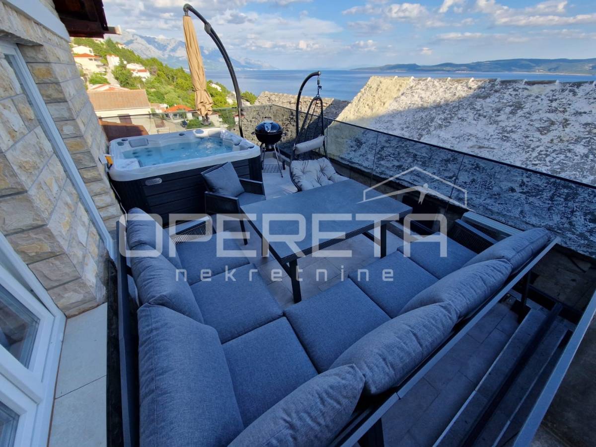 Zahvaljujući jugoistočnoj orijentaciji, prostor je cijeli dan ispunjen prirodnim svjetlom, dok terasa pruža privatnost i predivan pogled na more i okolne planine.
