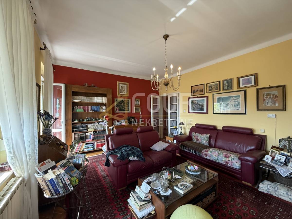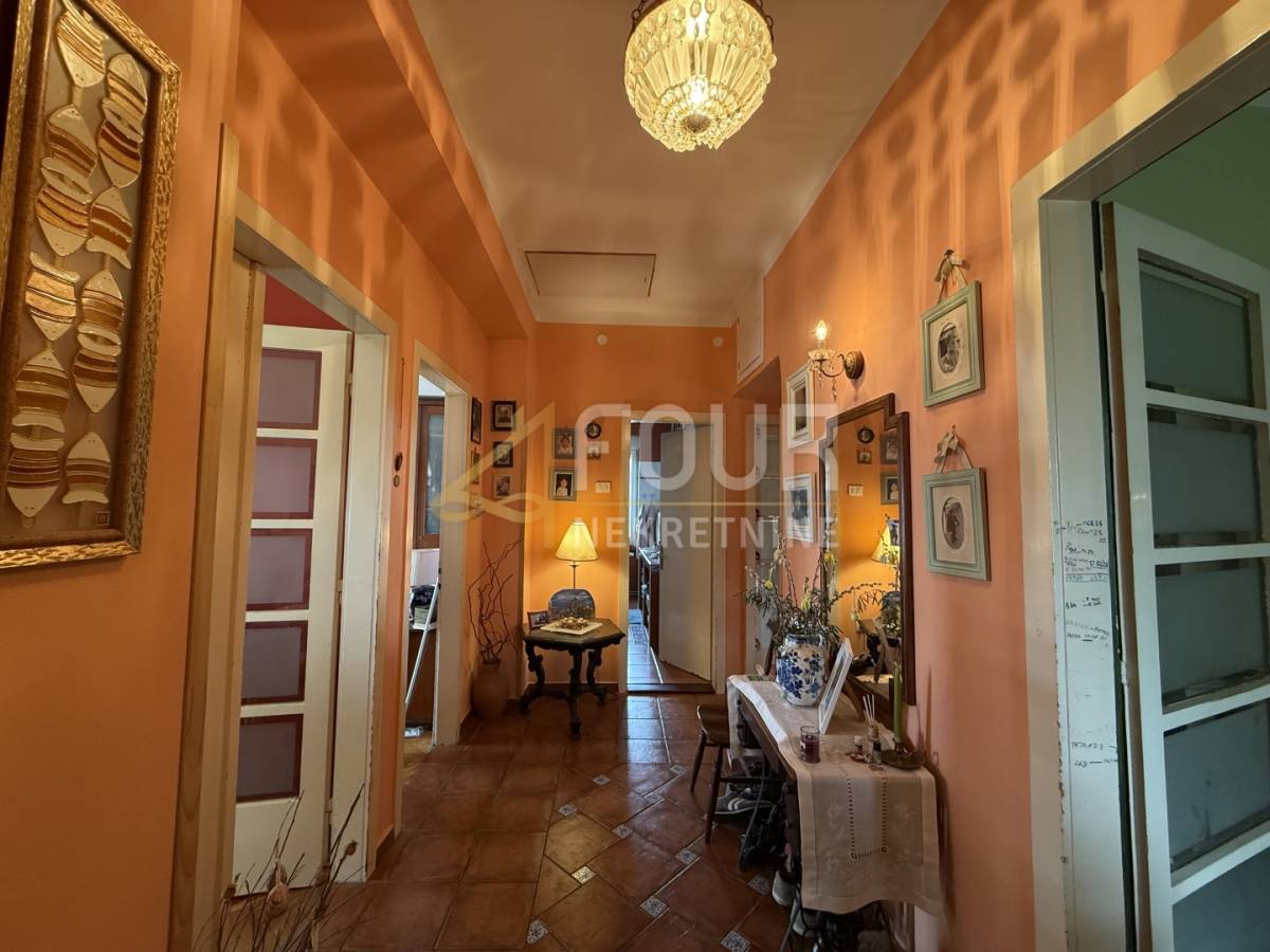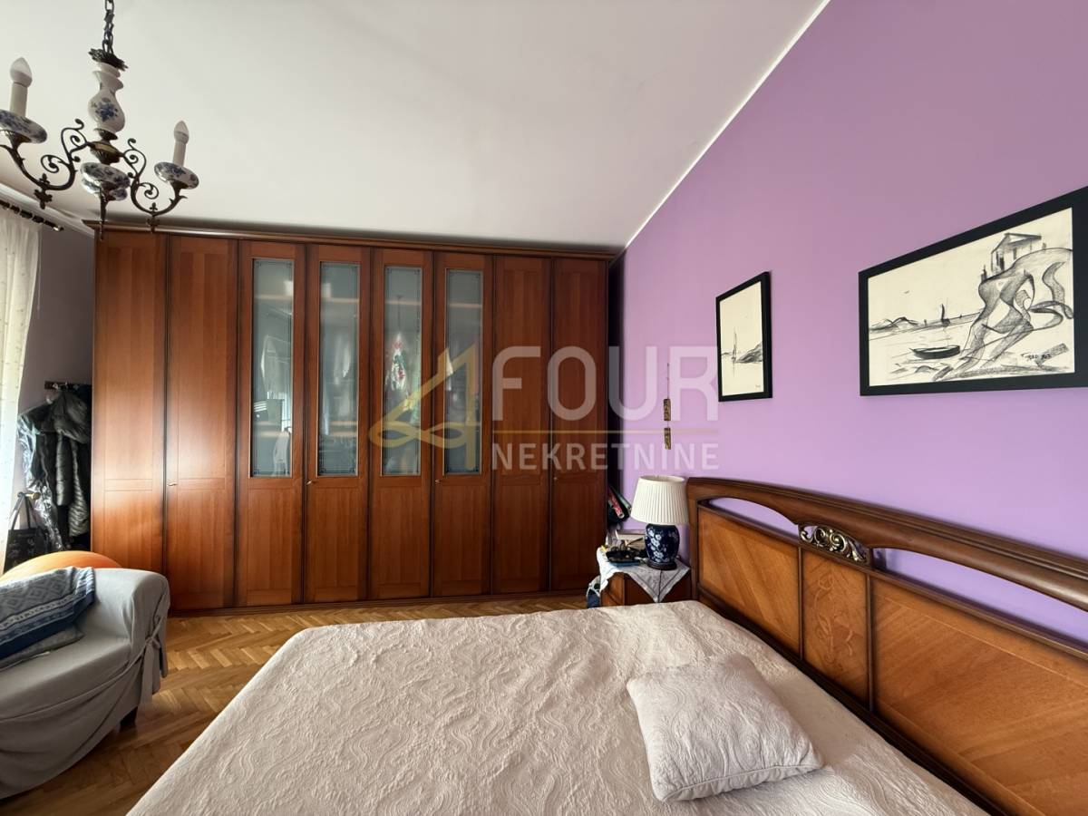 Dnevni boravak je prostran i svijetao, s izlazom na balkon s pogledom na more, dok glavna spavaća soba dijeli isti izlaz. Kuhinja ima zatvorenu lođu, a ostatak rasporeda čine kupaonica te dodatne sobe koje, iako različitih veličina, pružaju brojne mogućnosti organizacije prostora. Visoki stropovi dodatno naglašavaju osjećaj prozračnosti i komfora.
