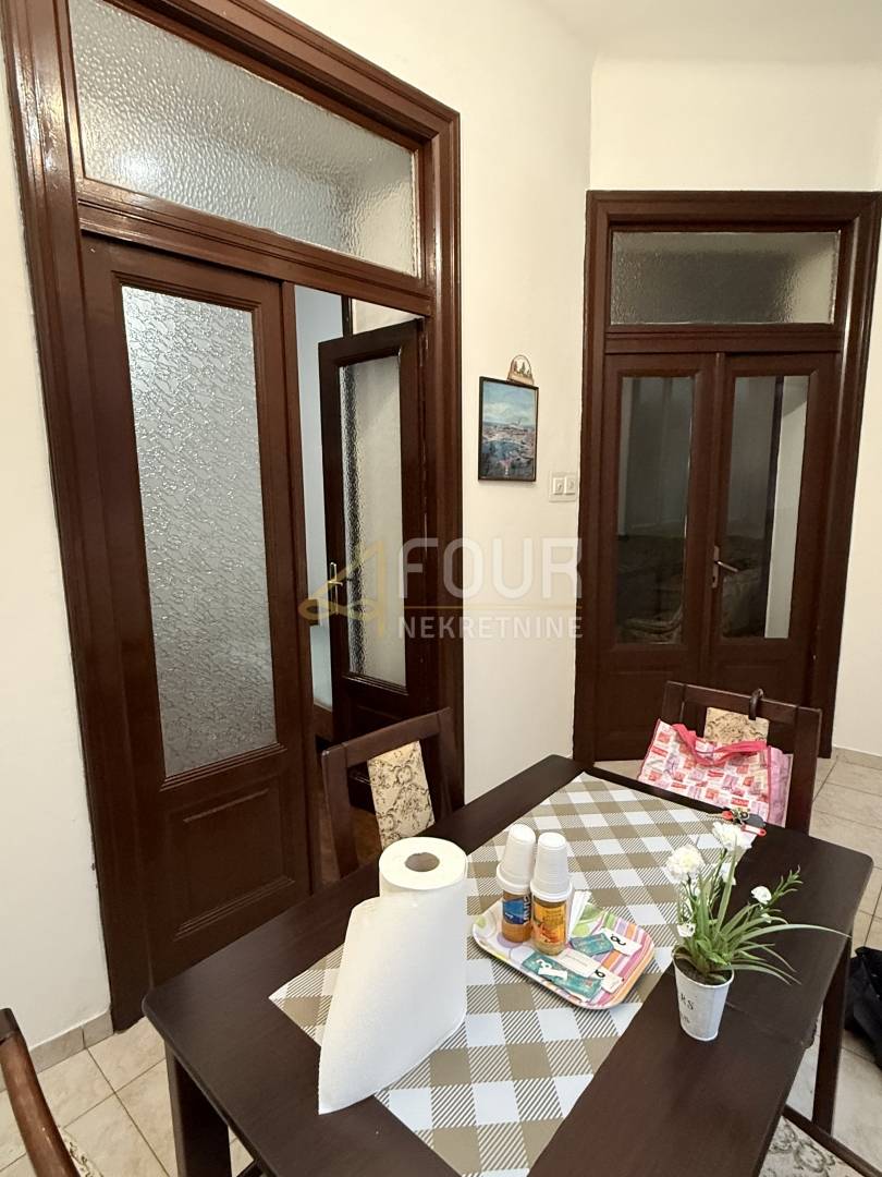 Ulazni balkon je zatvoren aluminijskom stolarijom te služi kao hodnik koji vodi u stan. Odmah pri ulazu, s lijeve strane, nalazi se soba koja ima vlastitu kuhinju i kupaonicu te funkcionira kao potpuno zasebna garsonijera, što je idealno za najam ili odvojeni uredski prostor. Ostatak stana sastoji se od više soba raspoređenih u prolaznom konceptu, s blagovaonicom smještenom na kraju hodnika. Kuhinja je manjeg formata, u funkciji čajne kuhinje. Balkon je orijentiran prema zapadu, dok je ostatak stana orijentiran zapad–sjever, što osigurava dobru osvijetljenost.