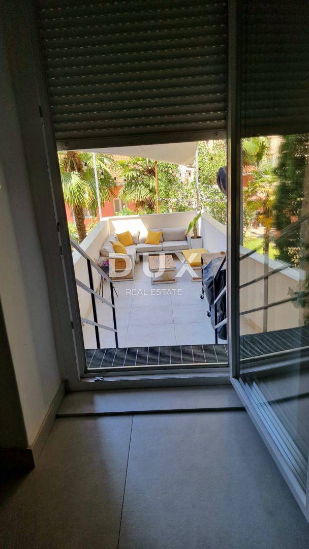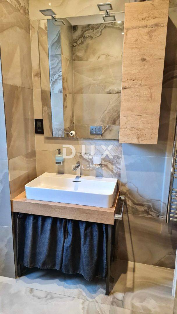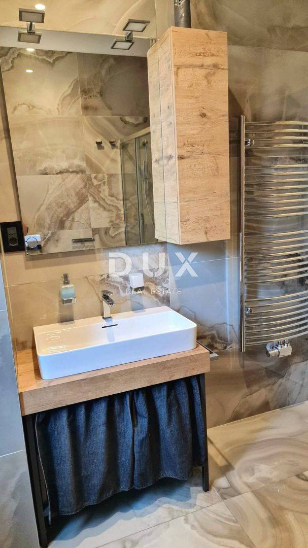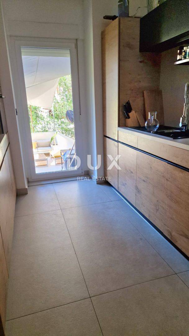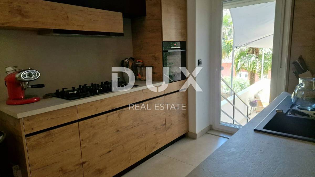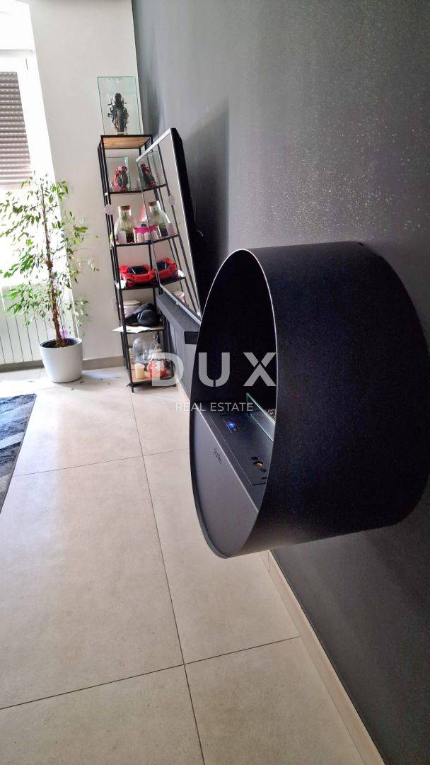Sastoji se od ulaznog hodnika, prostrane kuhinje s blagavaonom i dnevnim boravkom, dvije spavaće sobe od kojih se jedna koristi kao garderoba i kupaonice. Iz kuhinje se izlazi na prekrasnu terasu. Za grijanje se koristi plinsko etažno centralno grijanje i klima uređaj. Stan je kompletno adaptiran, uređen i namješten, i kao takav se prodaje.