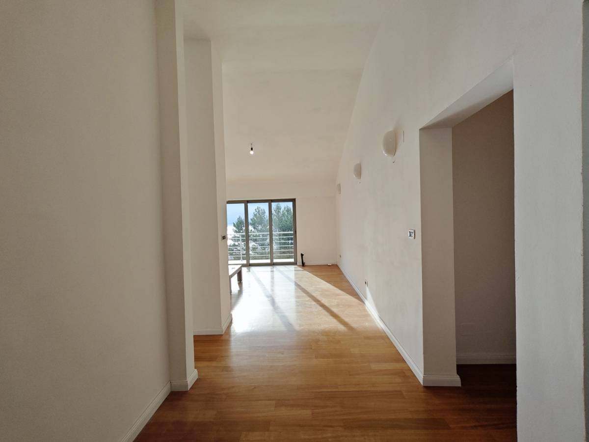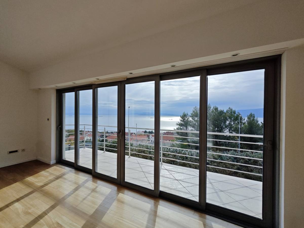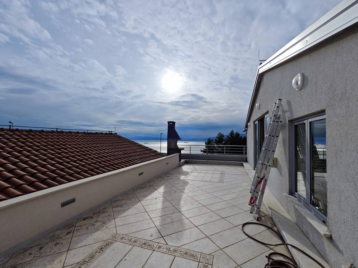 Na odličnoj lokaciji, ovaj penthouse s panoramskim pogledom na more nudi prostranih 143 m², idealnih za obiteljski život ili kao potencijalni poslovni prostor. Smješten na prvom katu, sastoji se od ulaznog prostora u prizemlju, privatnog stubišta koje vodi do glavnog dijela stana, prostranog hodnika, dvije sobe, dnevnog boravka, blagovaonice, kuhinje, dvije kupaonice i spremišta. Dodatnu vrijednost daju veliki balkon i prostrana terasa, s kojih se pruža očaravajući pogled na okolinu i morski horizont.