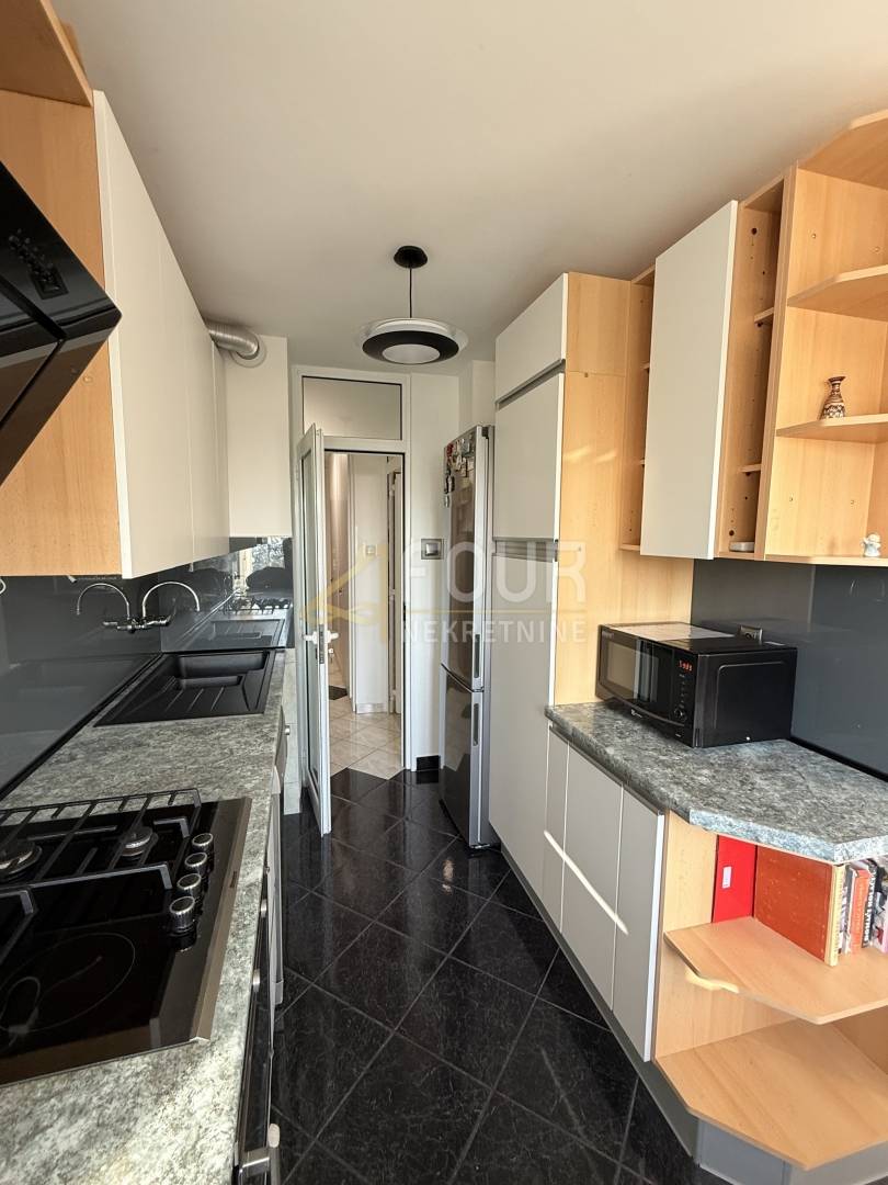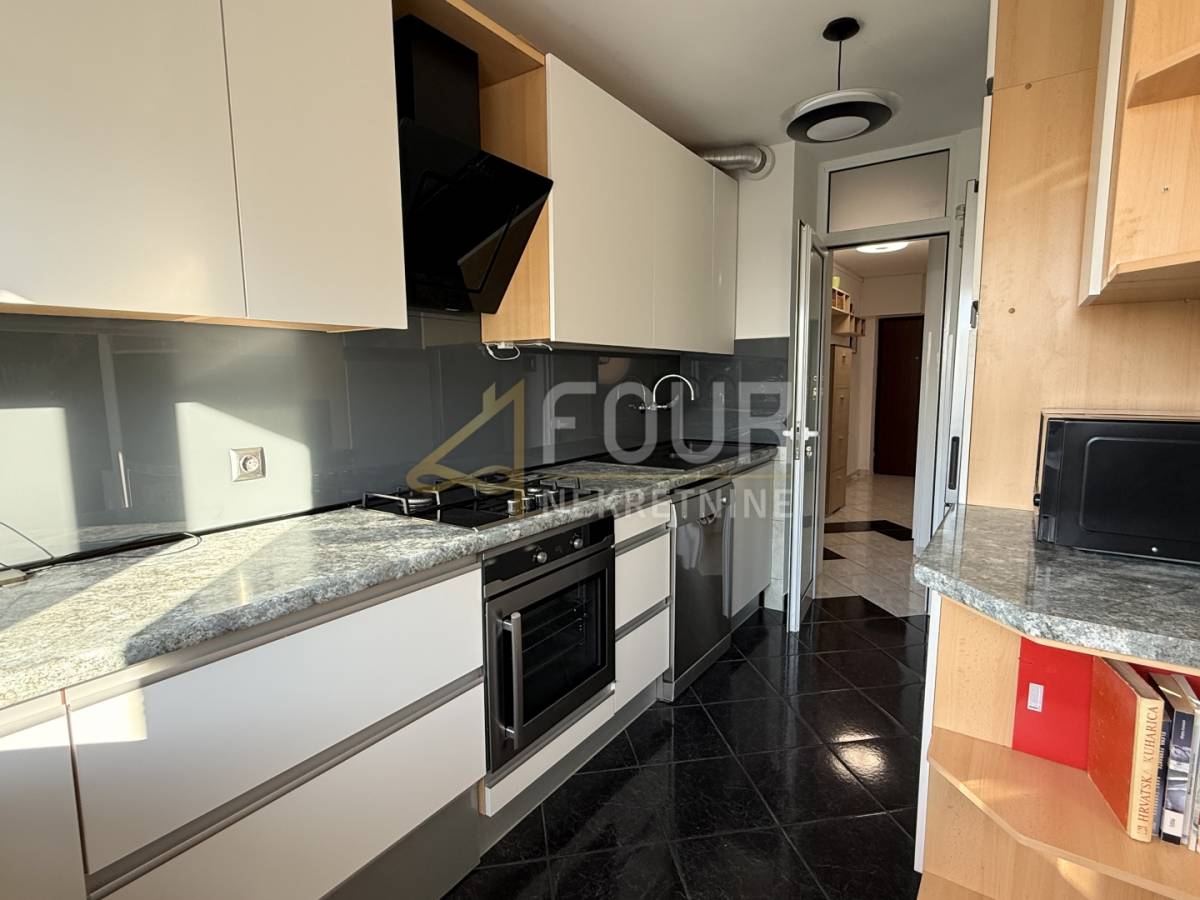 Prodaja uključuje kompletan namještaj i uređaje, osim osobnih sitnica. Kuhinja je opremljena štednjakom s električnom pločom, a moguće je i prilagoditi dodatne detalje prema želji kupca.