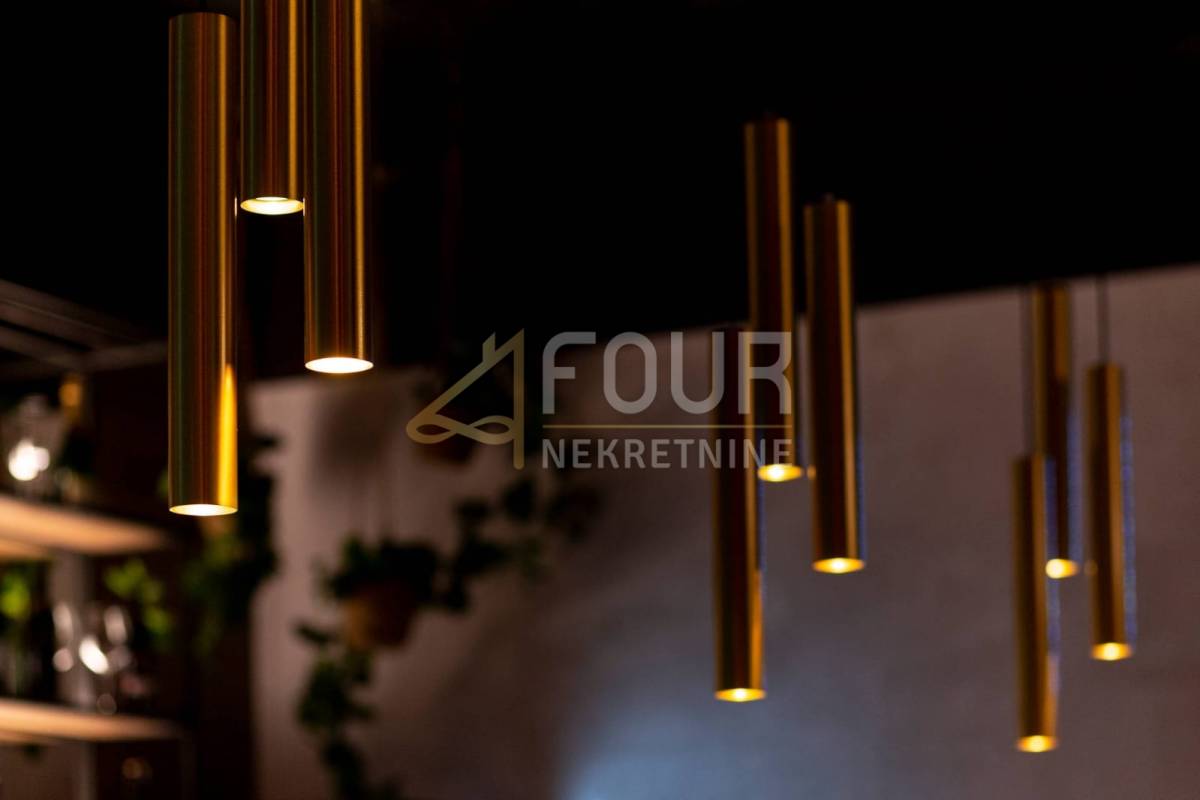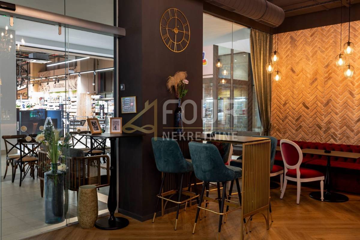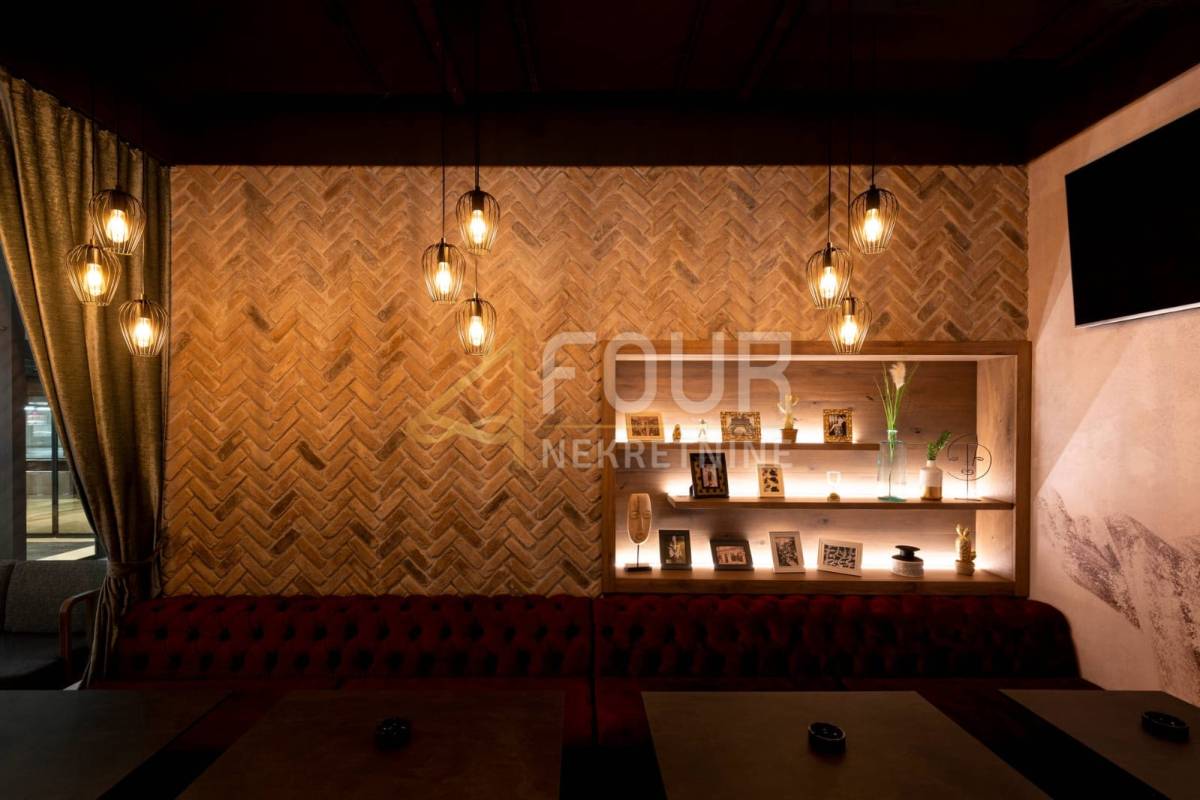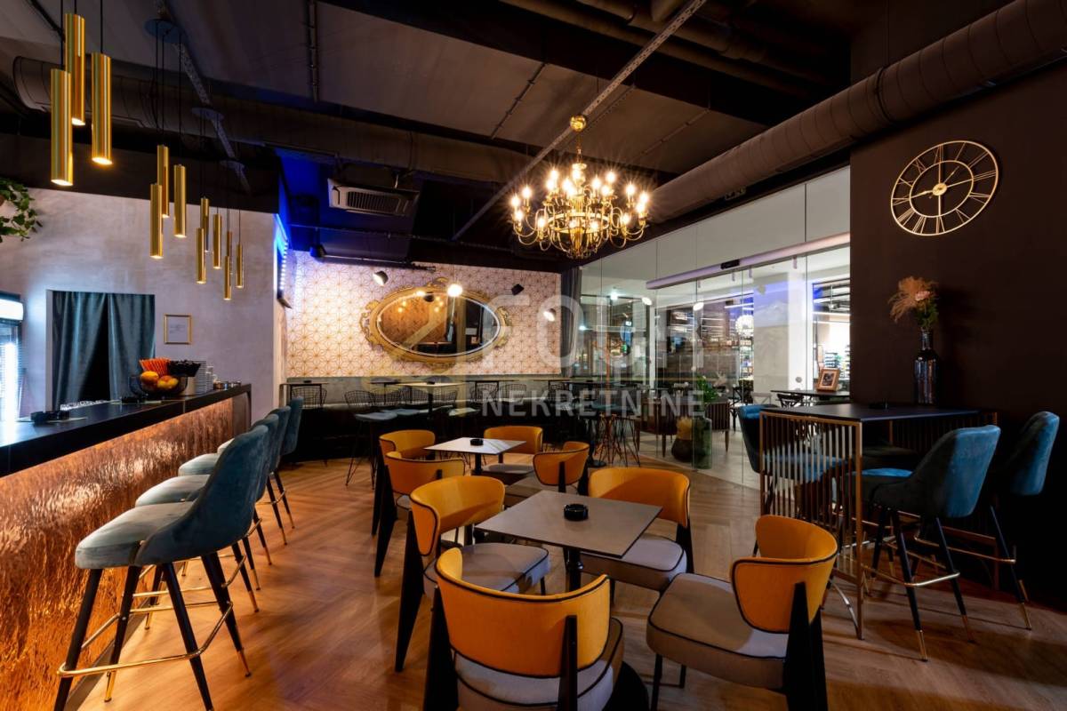 Prostor je uređen kao caffe bar i obuhvaća unutarnji prostor od 83,05 m2, unutarnju terasu od 84 m2 te vanjsku sjevernu terasu od 26,89 m2, uz okućnicu od 50 m2. Unutarnja terasa u vlasništvu, opremljena je s 13 stolova, dok vanjska nudi 28 stolova, pružajući idealne uvjete za ugodan boravak i ugostiteljsko poslovanje.