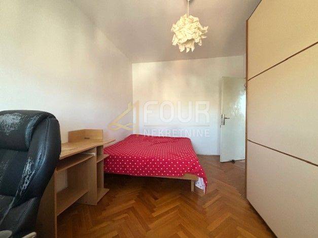 Sastoji se od kuhinje, tri sobe od kojih se jedna koristi kao dnevni boravak, ostave, kupaonice, hodnika, degažmana, lođe i pripadajuće drvarnice.