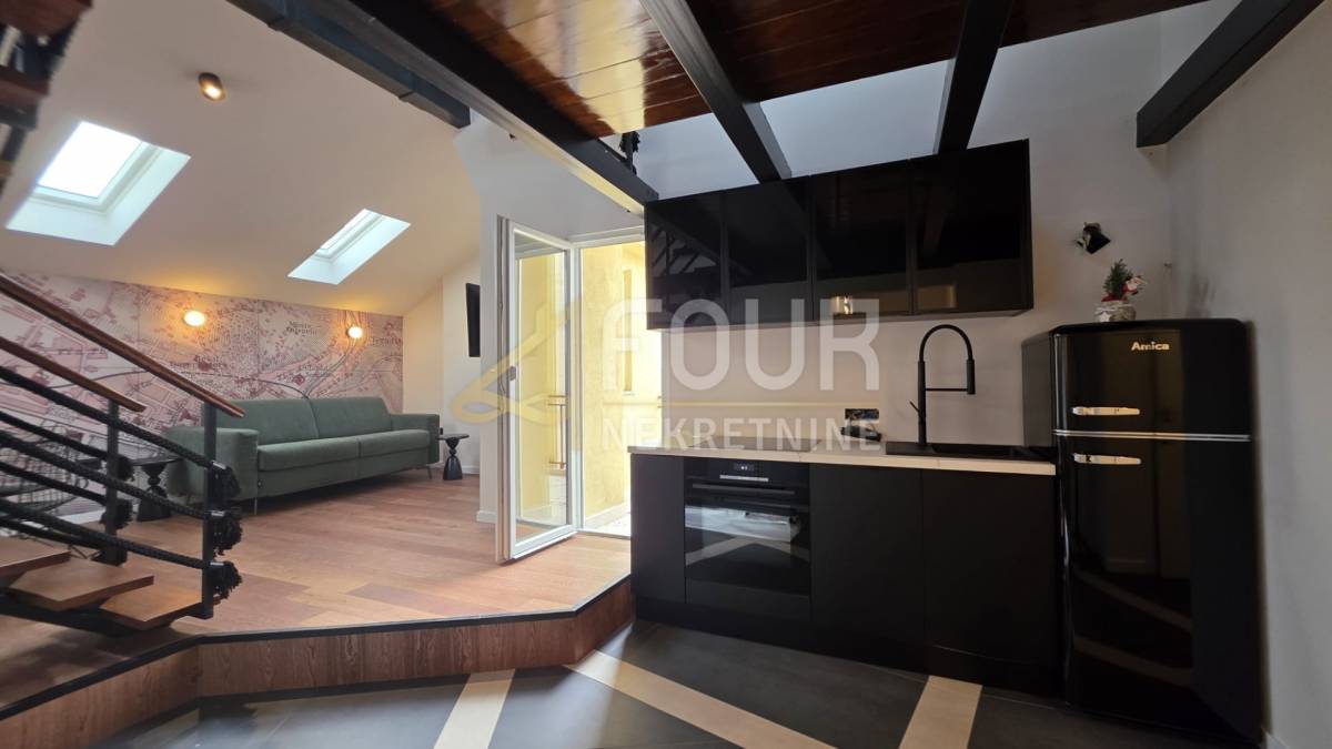 Prodaje se dizajnerski uređen stan s galerijskim prostoromu širem centru grada, smješten u urednoj stambenoj zgradi s novom fasadom.