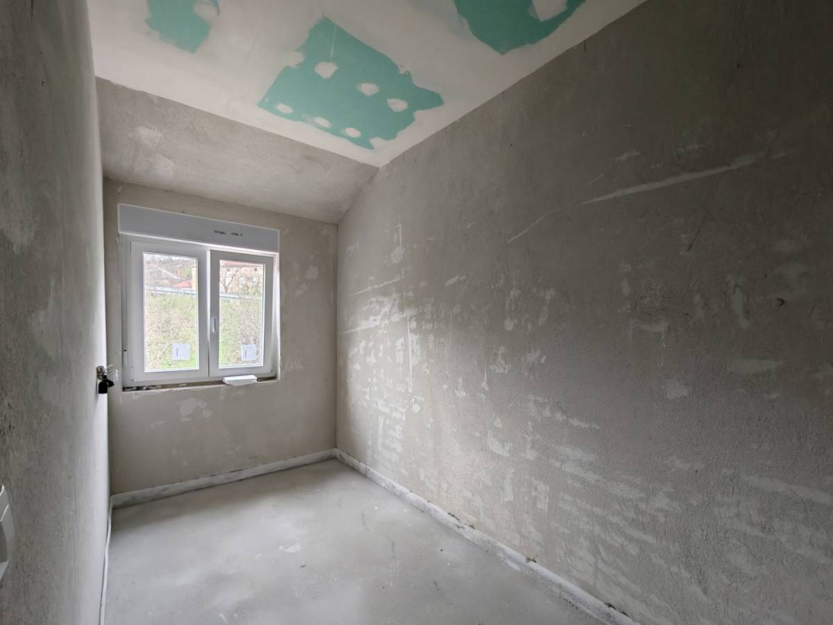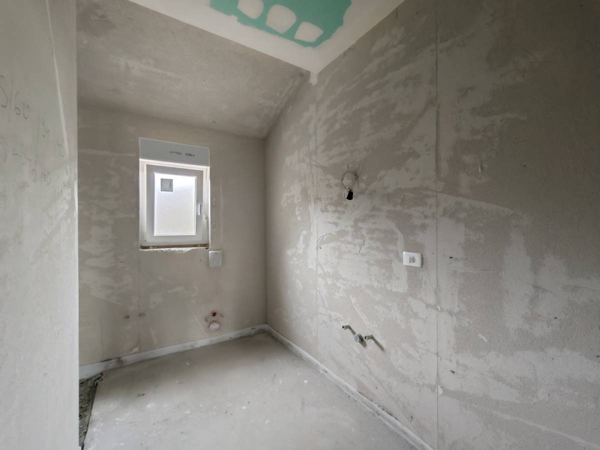 Kuća se prodaje u visokoj roh-bau fazi, s ugrađenim podnim grijanjem putem dizalice topline i uređenim okolišem. Završni radovi uključuju postavu podnih obloga, sanitarija i završno bojanje, što znači dodatno ulaganje prije useljenja, ali i mogućnost da se interijer prilagodi vlastitim navikama.