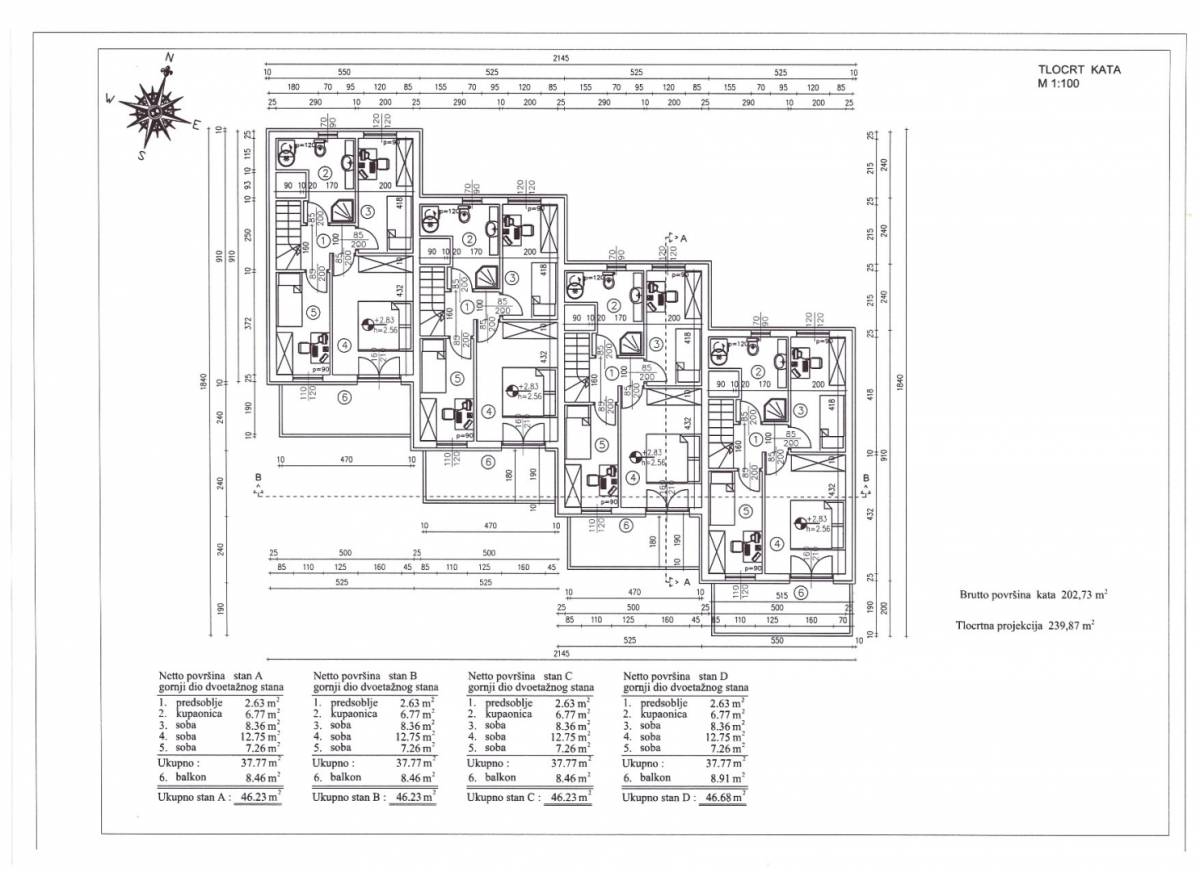 Krajnja pozicija znači više otvorenosti i veću okućnicu od ostatka niza. Okućnica ima oko 100 m2 i omogućuje boravak vani bez neposrednog kontakta sa susjedima, što se u praksi osjeti kroz veću razinu privatnosti.