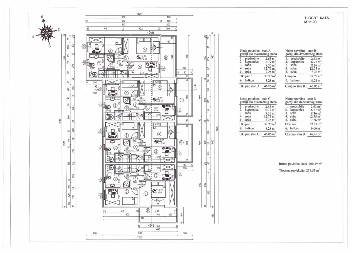 Na katu su tri spavaće sobe i kupaonica. Jedna soba može se koristiti kao radna ili gostinjska, ovisno o potrebi. Glavna spavaća soba ima izlaz na balkon s djelomičnim pogledom na more.