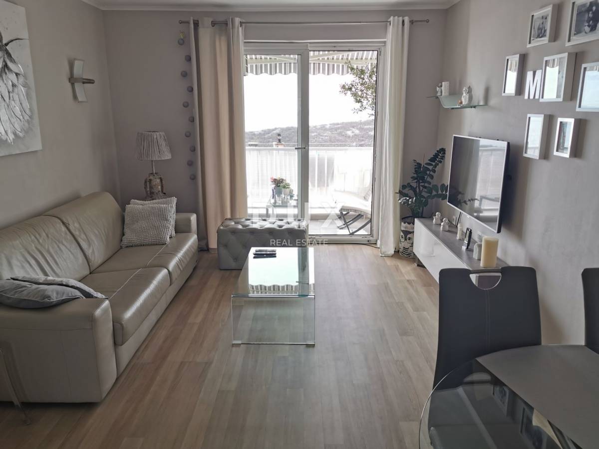 Stan je odličnog rasporeda, južno orijentiran s predivnim pogledom na more i okolicu. Sastoji se od ulaznog hodnika, kuhinje s blagovaonicom, dnevnog boravka s izlazom na balkon s panoramskim pogledom na more, dvije spavaće sobe i kupaonom.