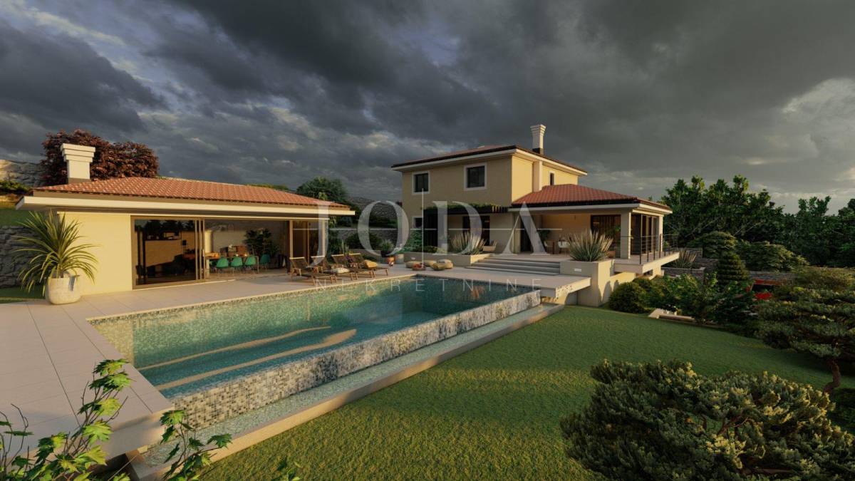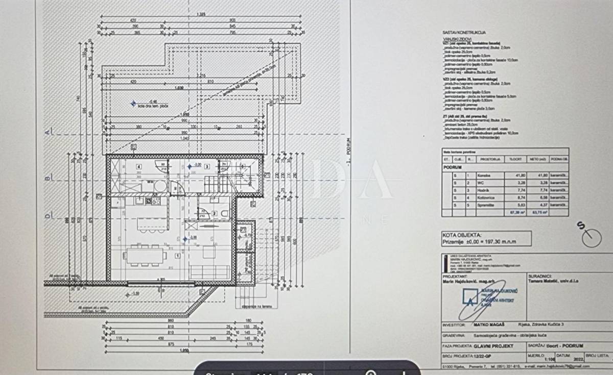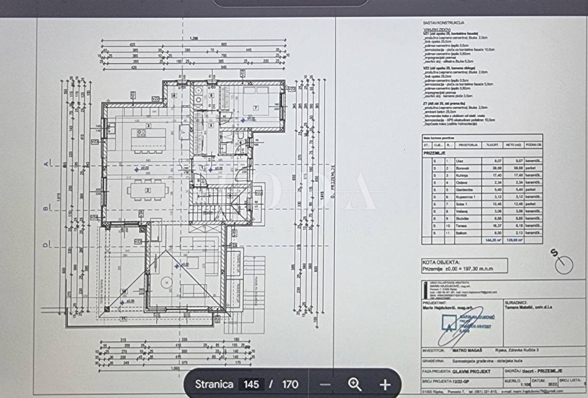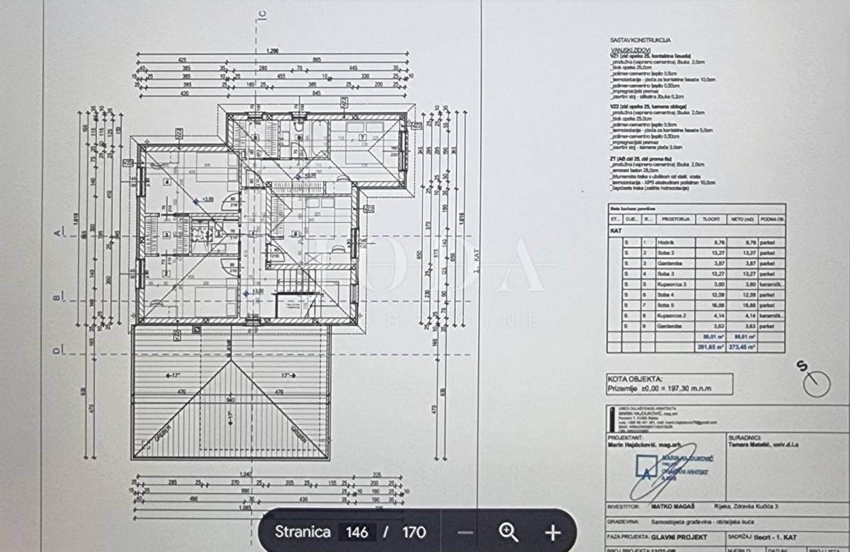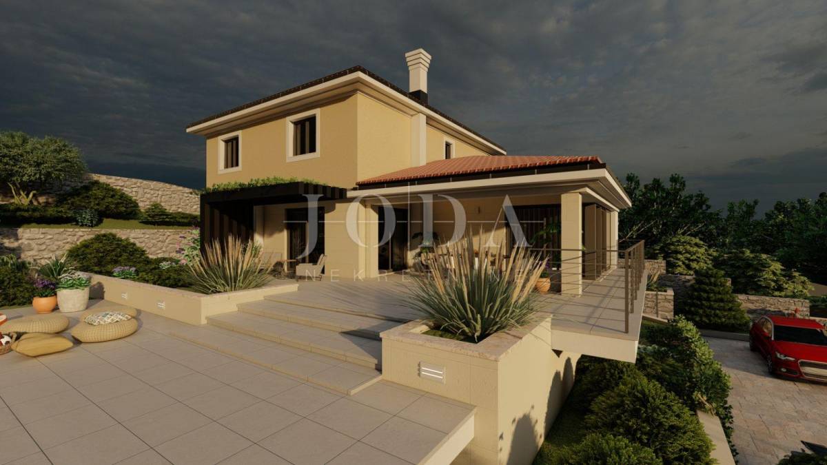 Prodajemo građevinski teren sa projektom za kuću na Trsatu. Otvoreni pogled na Kvarner, asfaltirana cesta, voda i struja do samog terena.
