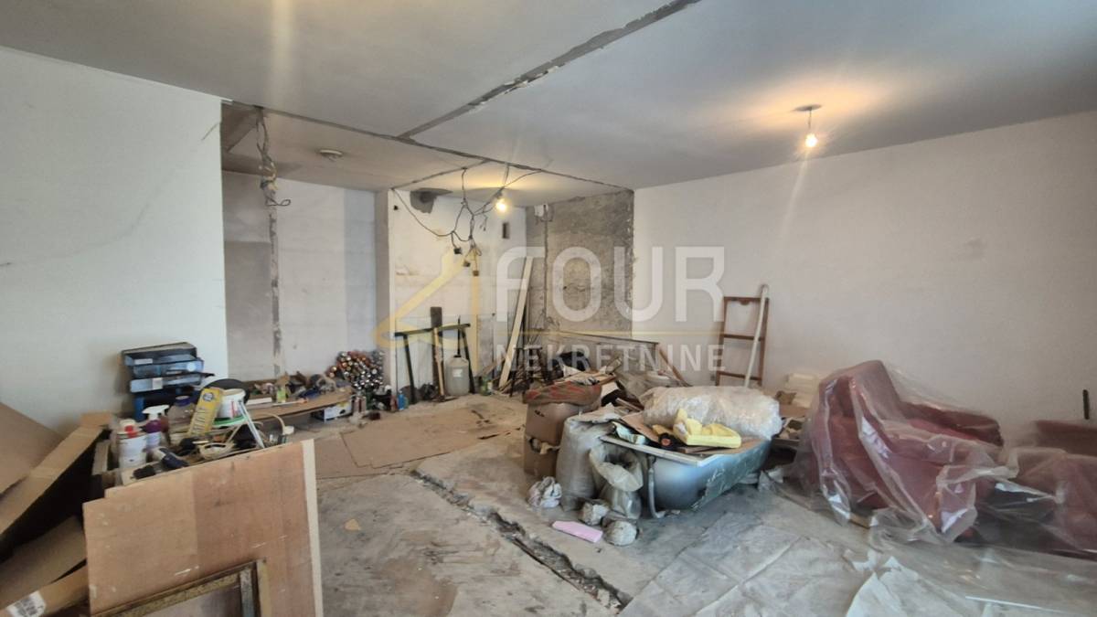 Adaptaciju je započeta, prostor je u potpunosti otvoren jer su uklonjeni pregradni zidovi, što budućem vlasniku omogućuje potpunu slobodu u organizaciji interijera i prilagodbi rasporeda prema vlastitim potrebama. Upravo takvo stanje čini ovu nekretninu idealnom prilikom za stvaranje modernog i funkcionalnog doma, uz mogućnost maksimalnog iskorištavanja svakog kvadratnog metra.