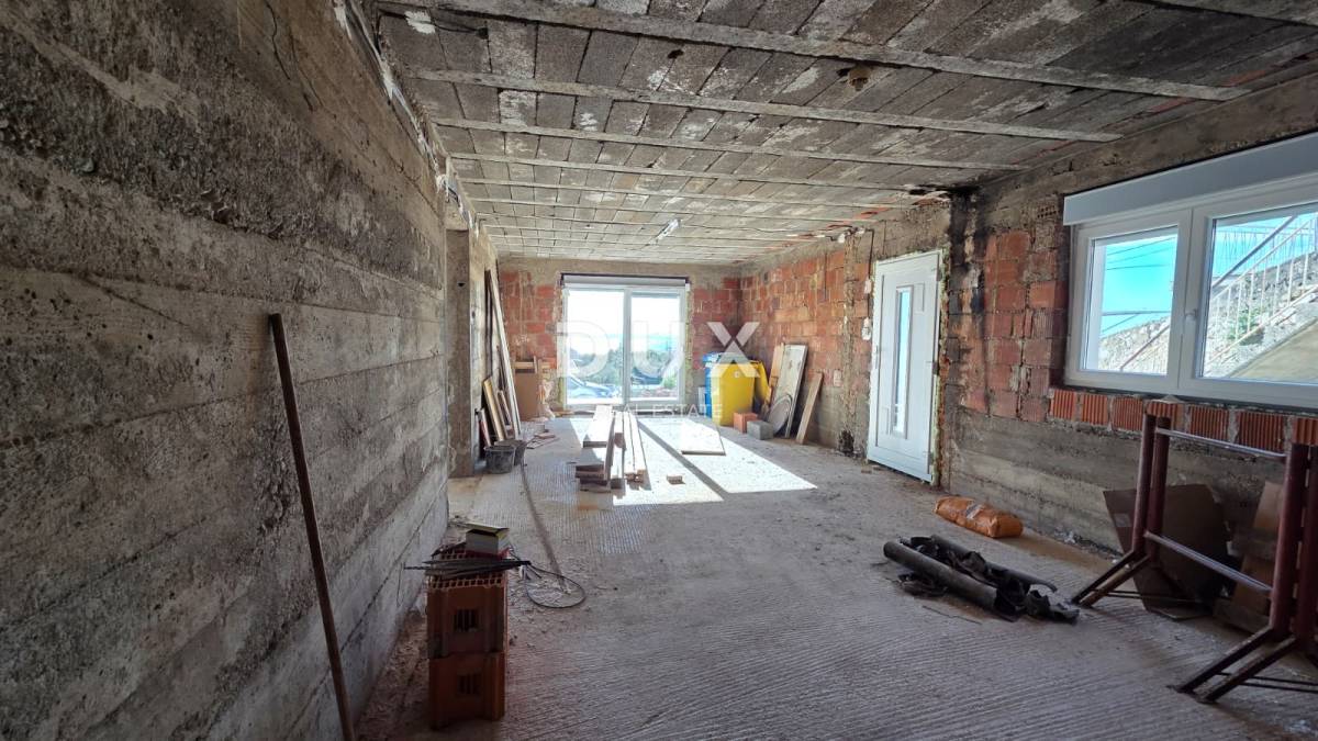 Na mirnoj uzvisini na Vojaku nalazi se kuća koja već na prvi pogled otkriva svoj potencijal – zbog položaja koji omogućuje otvoren pogled na more i grad, ali i zbog činjenice da je već dobrim dijelom tehnički obnovljena.