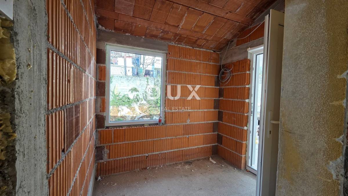 Cijelu etažu gornjeg kata, koji je također trenutno u roh-bau fazi, zauzima 2S+DB stan koji se proteže na 80m2 sa balkonom i prelijepim pogledom na more i Učku.