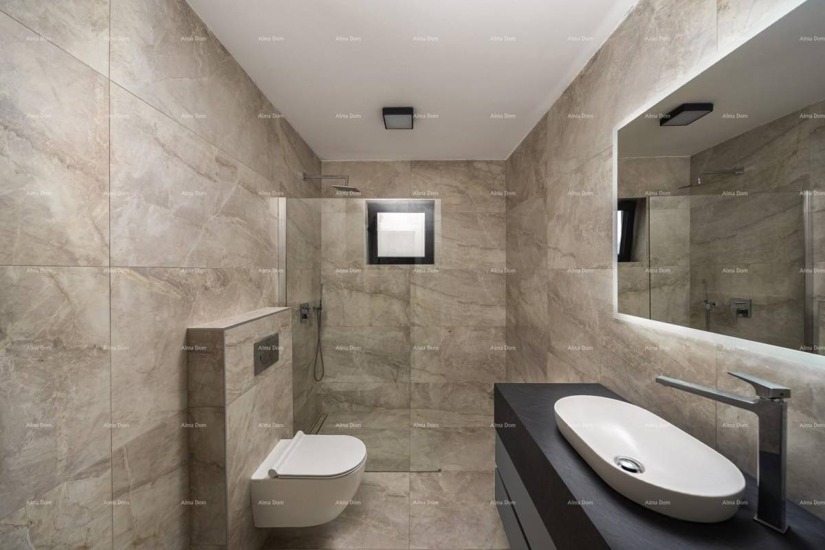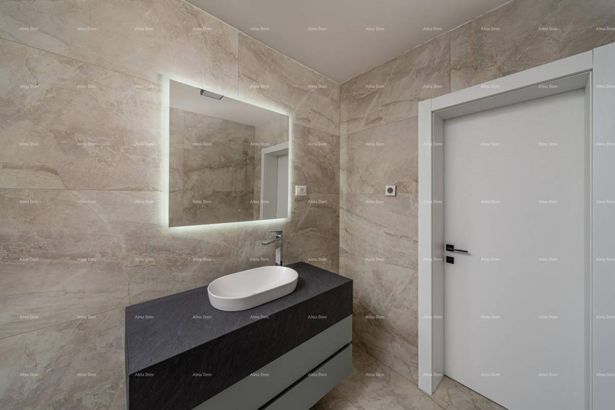 Stan se nalazi u elitnom dijelu Rovinja – Borik, u mirnoj ulici nekoliko minuta od mora, šetnica, parkinga i kafića. Smješten je u moderno projektiranoj zgradi sa samo šest stanova, liftom, privatnim parkirnim mjestom i spremištem u garaži. Hodnici su obloženi porculanskim pločicama, a zgrada ima individualne pristupne sustave.