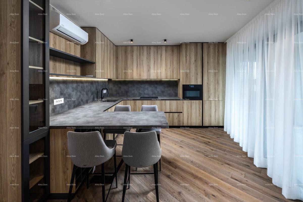 Stan se prodaje potpuno namješten, s kuhinjskim uređajima AEG te perilicom i sušilicom Miele — sve potpuno novo i nekorišteno.