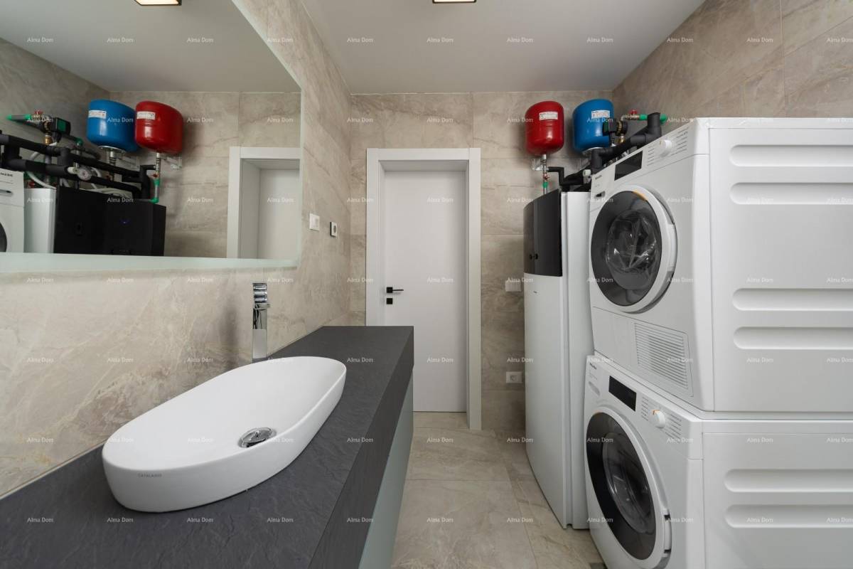 Stan je tehnički vrhunski opremljen: podno grijanje, dodatno grijanje i hlađenje putem fan-coil sustava, topla voda preko bojlera povezanih na toplinske pumpe Daikin, a svaki stan ima svoj depurator pitke vode. Podovi su prekriveni parketnom daskom od prirodnog drva.