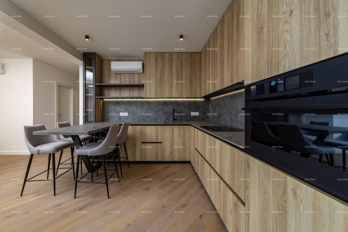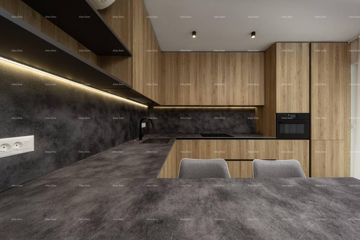 Stan se prodaje potpuno namješten, s kuhinjskim uređajima AEG te perilicom i sušilicom Miele — sve potpuno novo i nekorišteno.