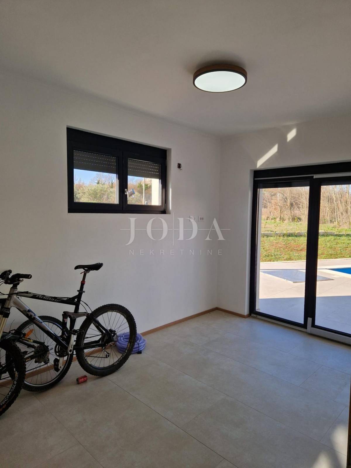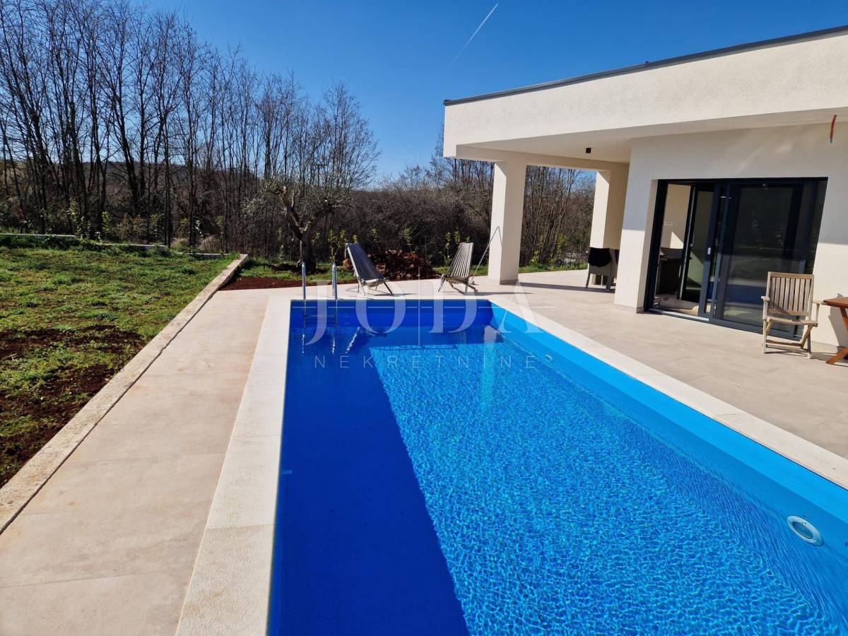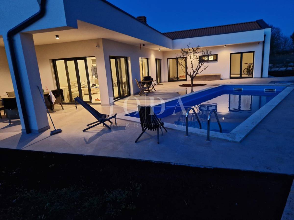 Iz dnevnog prostora izlazimo na veliku terasu i bazen sa sunčalištem, a za uživanje u jelima u toplim ljetnim danima tu je i ljetna kuhinja.