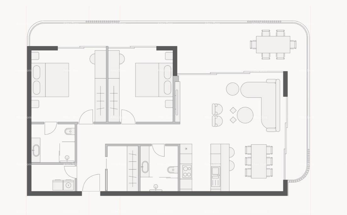 Ukupna površina stana iznosi 149,5 m², uključujući prostranu terasu od 39,6 m², koja dom pretvara u oazu mediteranskog načina života.
