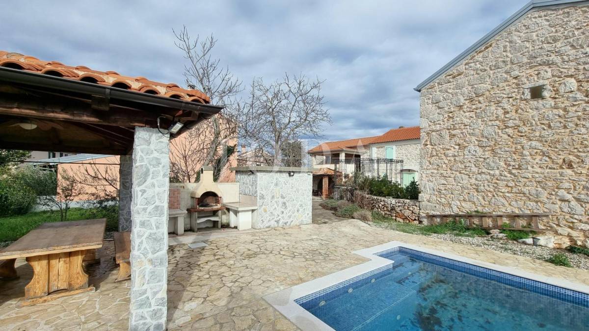 Na prodaju je rustikalna kamena kuća sa bazenom i prostranom okućnicom u okolici Malinske, udaljena 4 km od mora. Kuća se smjestila na parceli ukupne površine 911 m2, sa prekrasnim bazenom od 30 m2, sunčalištem, vanjskom kućicom i pergolom za uživanje u roštilju i druženjima na otvorenom. Kuća je izgrađena 1850. godine te je u potpunosti rekonstruirana na način da se očuva što više izvornih detalja poput tradicionalne šterne te autohtonog kamena. Sastoji se od dvije odvojene etaže svaka sa dvosobnim apartmanom i lijepim natkrivenim terasama sa pogledom na vrt i okolnu prirodu, povezane vanjskim kamenim stepeništem. Posebno mjesto u kući zauzima zidani kamin idealan za ugodna druženja u zimskim danima. Na okućnici se nalazi više parkirnih mjesta te brojne mediteranske biljke. Prilika za kupovinu kvalitetne rustikalne kuće sa lijepom okućnicom i bazenom.