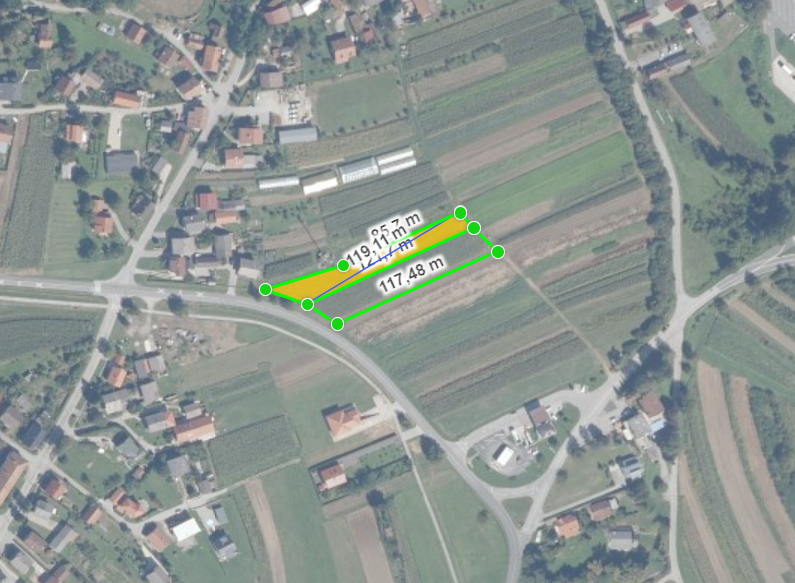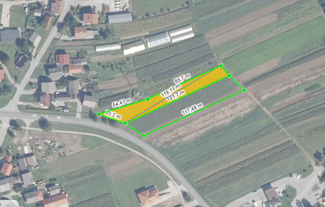 Građevinsko zemljište u blizini granice sa Slovenijom, na dobroj poziciji, sastoji se od 2 parcele ukupne površine 4270 m2 uz glavnu cestu.