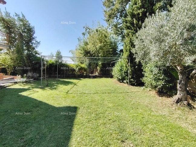 Put do kuće za automobile prema garaži je poploćen tlakovcem, a ostalo je sve u zelenilu, pokriveno gustom uredno pokošenom travom i okruženo mediteranskim grmljem koje služi kao živa ograda.