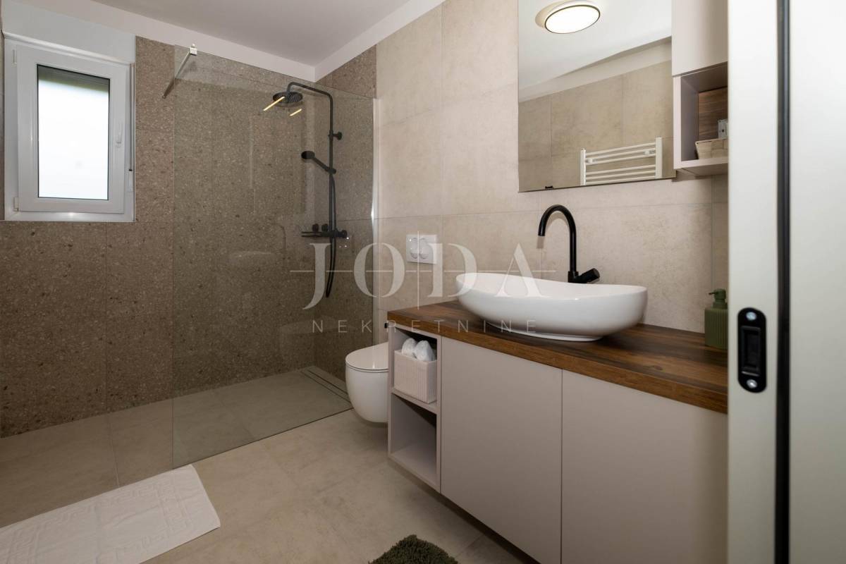 U mirnom dijelu unutrašnjosti otoka Krka prodaje se villa površine 160 m2, sagrađena na parceli od 636 m2. Stambeni dio ville obuhvaća prizemlje i kat. U prizemlju je ulazni hodnik, spavaća soba s kupaonicom, kuhinja s blagovaonom i dnevnim boravkom, wc i spremište. Dvije spavaće sobe i dvije kupaonice, kao i prostrana terasa se nalaze na prvom katu. Na okućnici se nalazi grijani bazen, uređeni vrt i natkrivena terasa s ljetnom kuhinjom. Sve prostorije u kući su klimatizirane, kuća ima video nadzor i alarm, a okućnica je uređena i ima automatsko navodnjavanje.