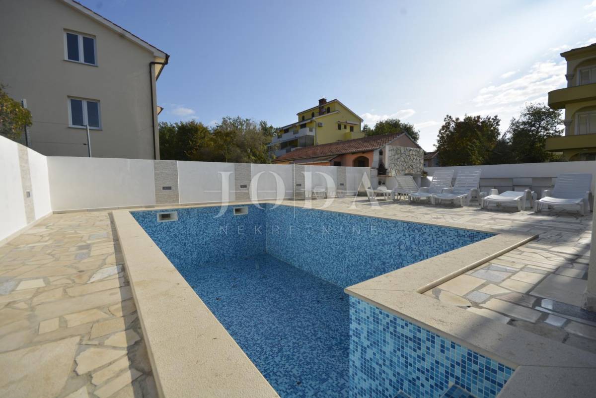 Samostojeća kuća s bazenom nalazi se na mirnoj lokaciji u Malinskoj. Kuća ima ukupnu površinu površinu od 530 m2 i proteže se na četiri etaže. Podrum se sastoji od apartmana s izlazom na terasu, vešeraja, hodnika, kupaone, teretane i prostorije predviđene za kotlovnicu. Prizemlje se sastoji od ulaznog dijela, kupaone, kuhinje, spavaće sobe s kupaonom i terasom. Na prvom katu se nalaze tri spavaće sobe svaka sa svojom kupaonom i izlazom na terasu. Drugi kat se sastoji od kuhinje, spavaće sobe, kupaone i velike terase s pogledom na more. Na okućnici od 607 m2 se nalazi bazen sa sunčališnom zonom i roštilj u kamenu.