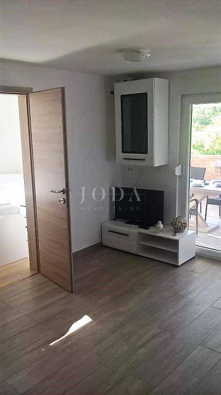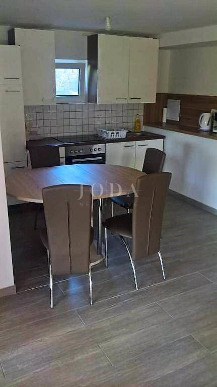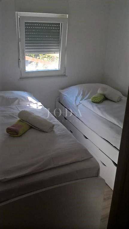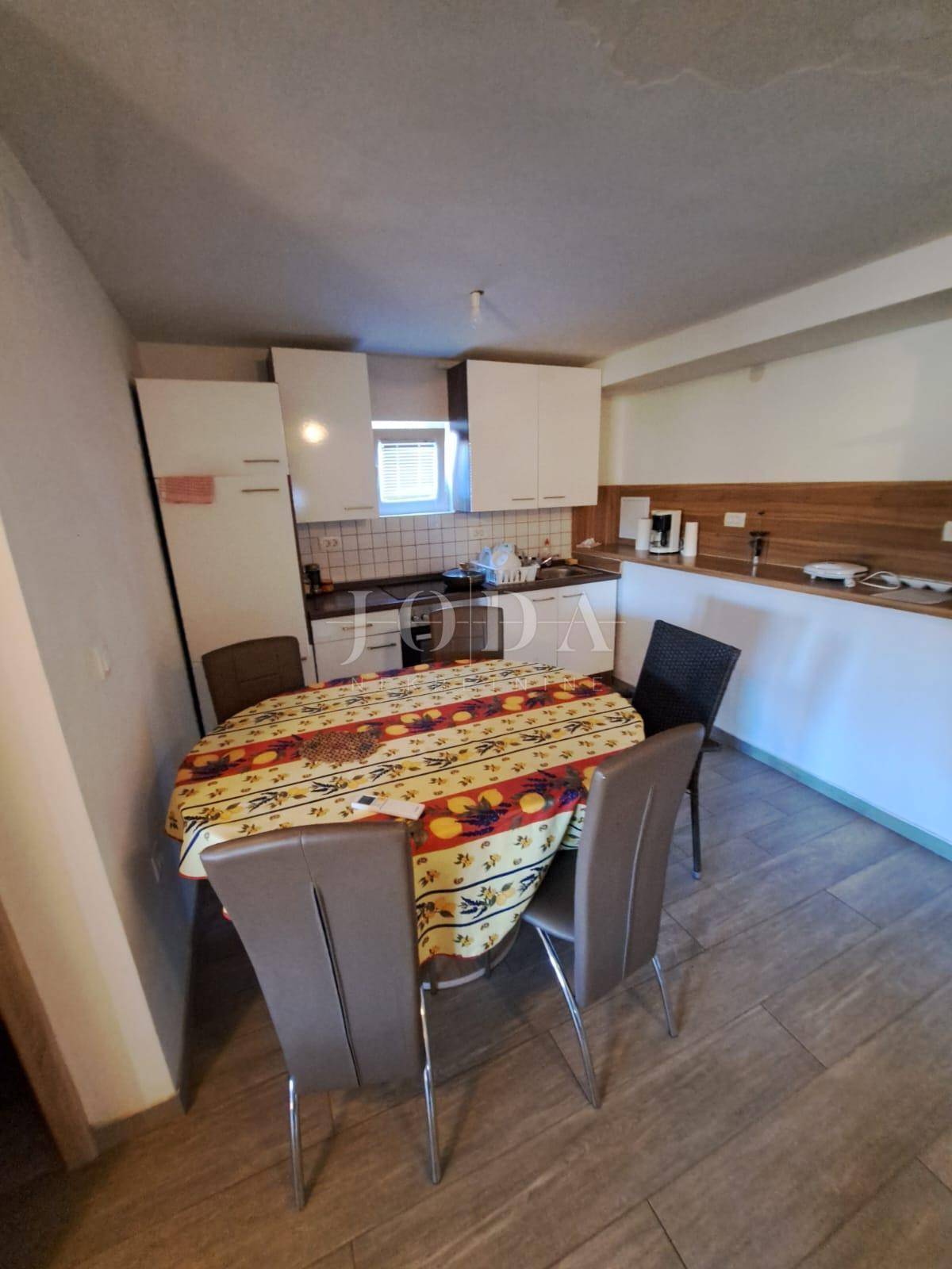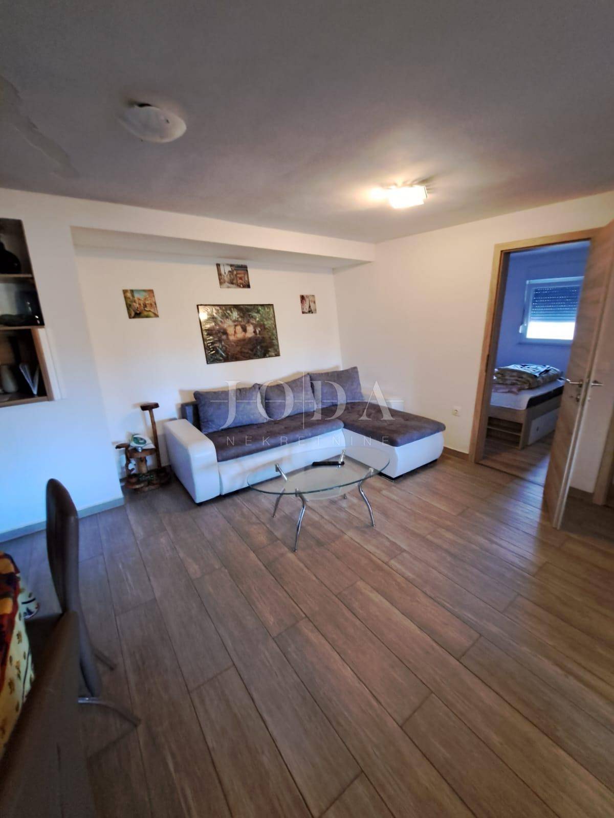 Kuća je sagrađena na zemljištu površine 1900m2. Nalazi se na mirnoj lokaciji, na kraju slijepe ulice. Radi se o visokoj prizemnici koja na donjoj etaži ima uređeni apartman. Apartman se sastoji od dnevnog boravka s kuhinjom, dvije spavaće sobe i kupaonice. Gornja etaža je u roh bau fazi s velikim potencijalom za uređenjem još jednog apartmana. Na velikoj okućnici nalazi se grijani bazen te solarna elektrana jačine 5,28 kW. Kući pripada i natkrivena terasa za druženje s prijateljima i obitelji, vanjski tuš, sunčalište te parking. Prilika za investiciju u turizam pošto se kuća uspješno iznajmljuje u turističke svrhe.