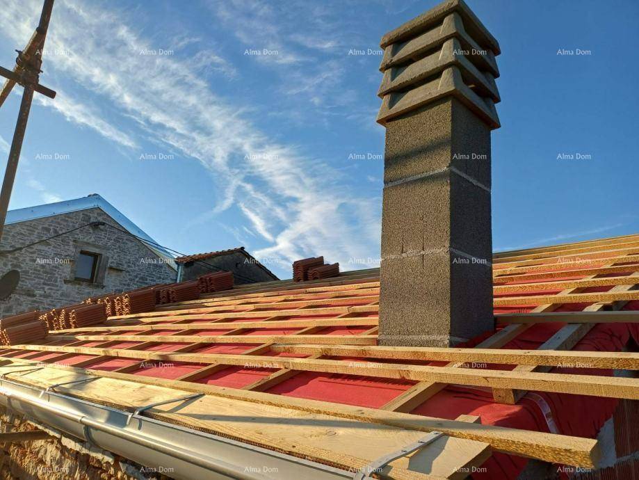 Na prodaju je samostojeća kuća smještena u mirnom naselju općine Tinjan, s već ishodovanom građevinskom dozvolom i prijavljenim početkom gradnje – idealna prilika za one koji žele dovršiti kuću po vlastitim željama, s već završenim ključnim građevinskim fazama.
