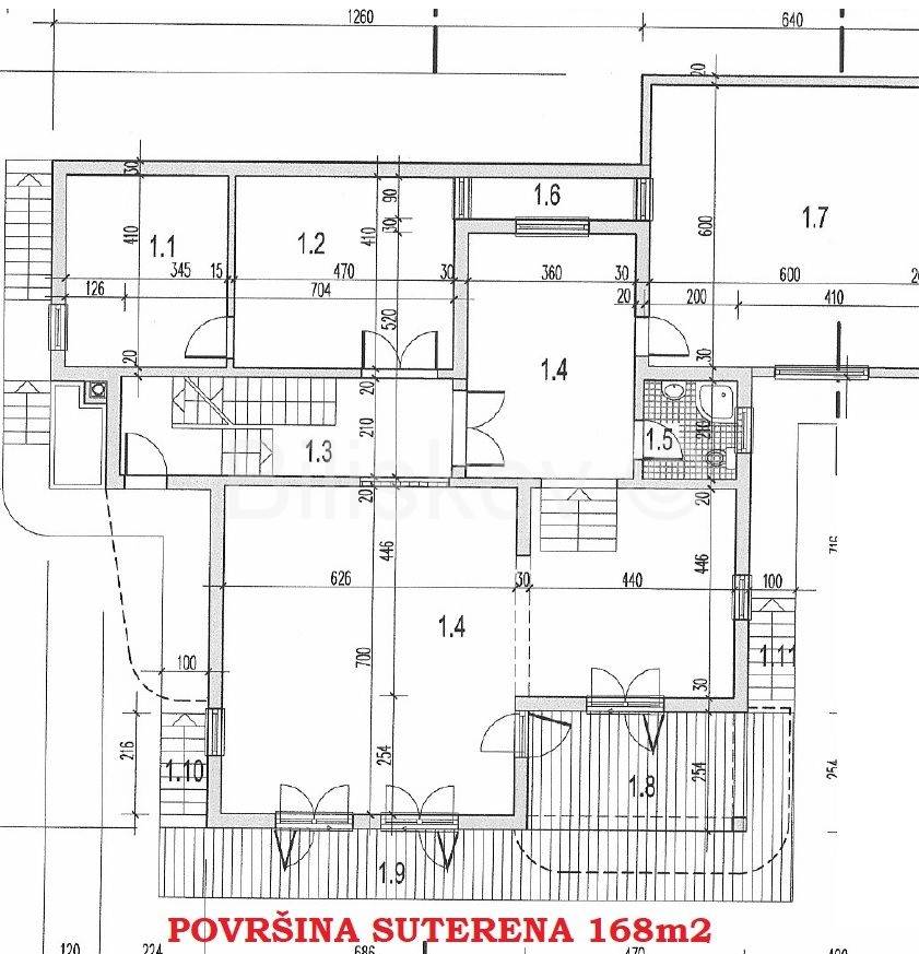Samostojeća kuća ukupne površine 616 m2 sagrađena 1999. godine na parceli površine 4359 m2.
