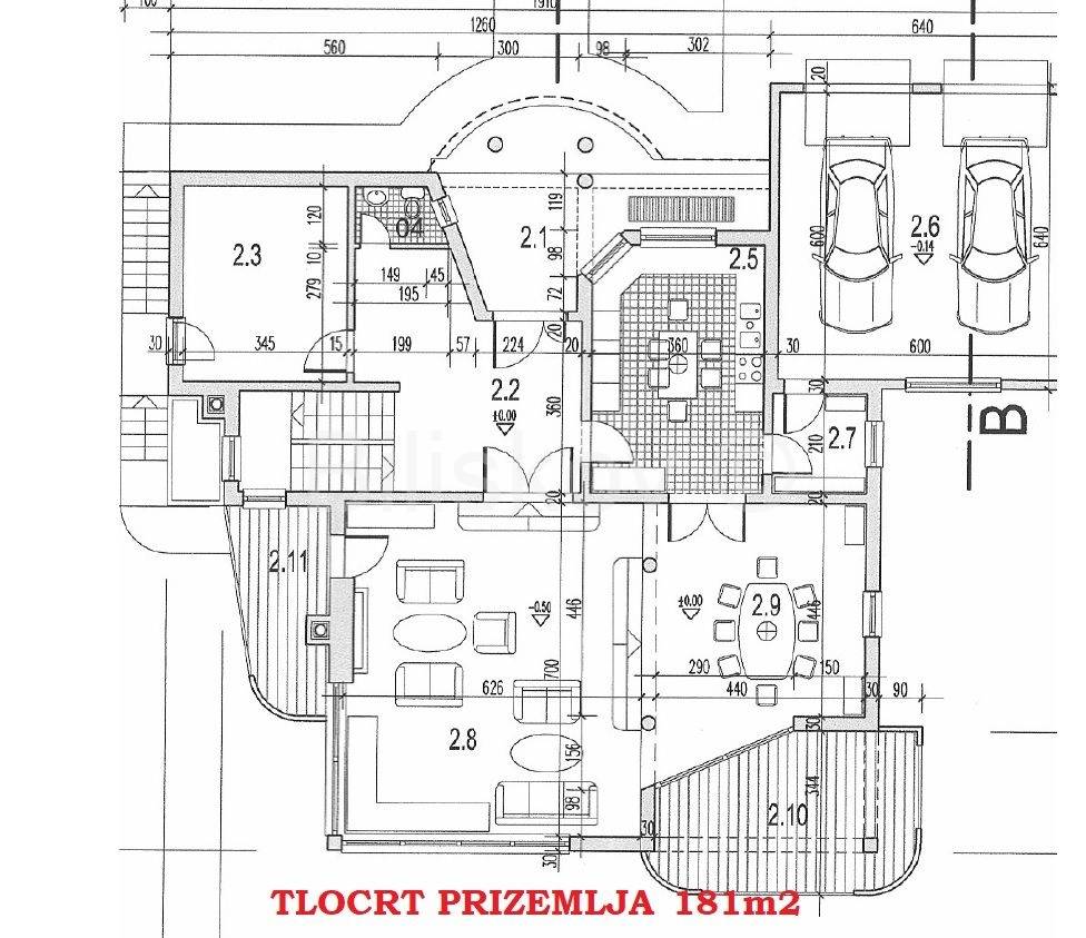U prizemlju kuće se nalazi garaža za dva automobila i dva parkinga, a vrt se prostire na preko 4150 m2 u kojem se nalazi prekrasna sjenica s roštiljem. Krovište promijenjeno 2019. godine.