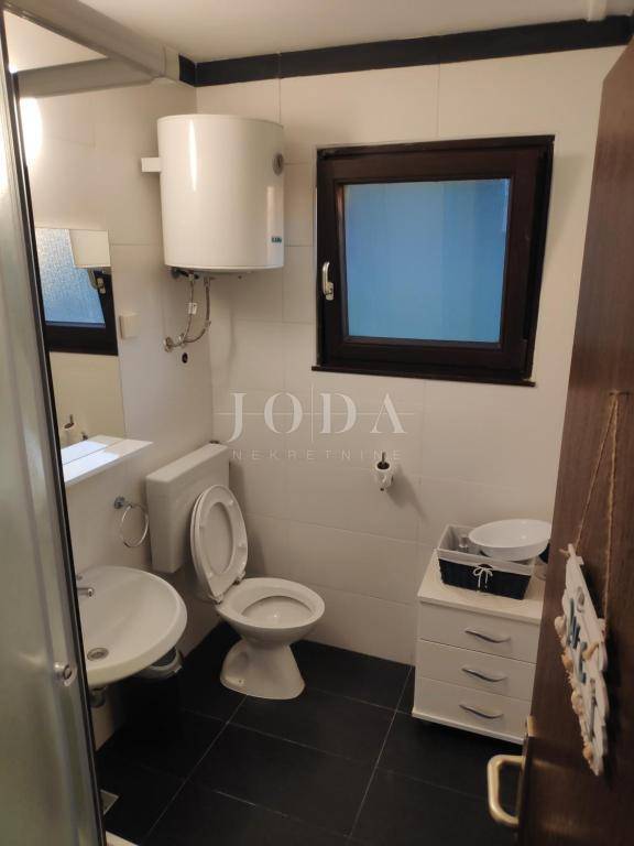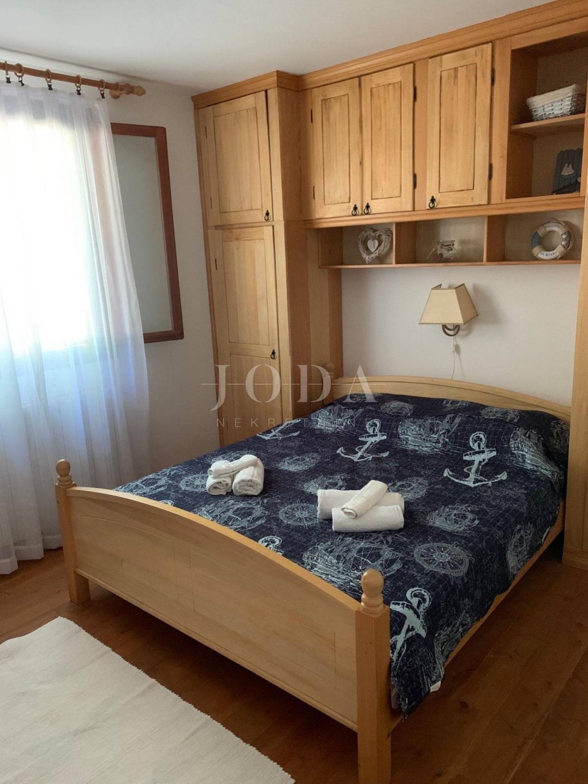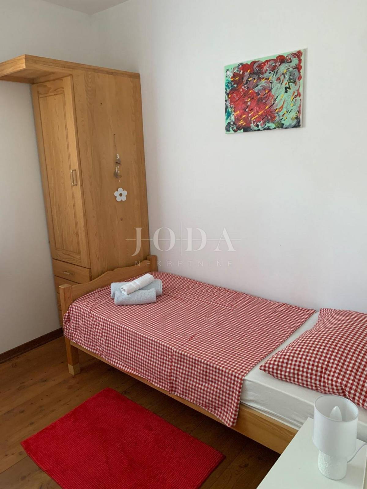 Sastoji se od jednog većeg apartmana i dva manja identična apartmana, a najveći apartman se nalazi u zasebnom objektu. Najveći apartman je vrlo prostran i ima 100m2 stambene površine. Ima open space kuhinju i dnevni boravak te tri spavaće sobe i kupaonicu. Unutarnje stepenište u hodniku vodi u potkrovlje, gdje se nalazi prostorija za spavanje. Centralno grijanje za kuću se nalazi u potkrovlju i radi na struju. Veći apartman od 50 m2 nalazi se s druge strane objekta i ima poseban ulaz i terasu. Sastoji se od open space dnevnog dijela i kuhinje, kupaonice i dvije spavaće sobe. Na prvom katu su dva manja apartmana koji imaju identičan raspored. Površine iznose 25m2 i oba se sastoje od dnevnog dijela i kuhinje, kupaonice i spavaće sobe. Ovi apartmani također imaju terasu. Apartmani su u potpunosti klimatizirani. U prizemlju se nalazi zasebna vanjska kupaonica, prekrasna natkrivena i velika terasa s ljetnom kuhinjom i zidanim roštiljem. Vrt je vrlo lijepo uređen. Dostupna je vrtna ostava za odlaganje alata i drugih stvari. Kući pripada i parking za pet automobila. Nalazi se na odličnoj lokaciji. Nekretnina je idealna za iznajmljivanje. Prilika!