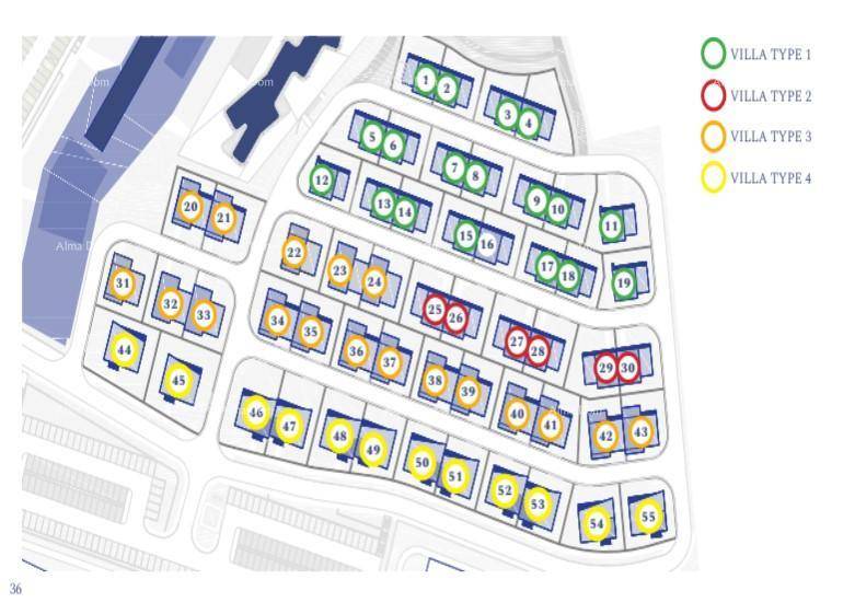 Samo naselje se sastoji od 55 vila, aparthotela od 179 apartmana s velikim, zajedničkim infinity bazenom od 105 metara, te tri manje zgrade sa po 6 apartmana.