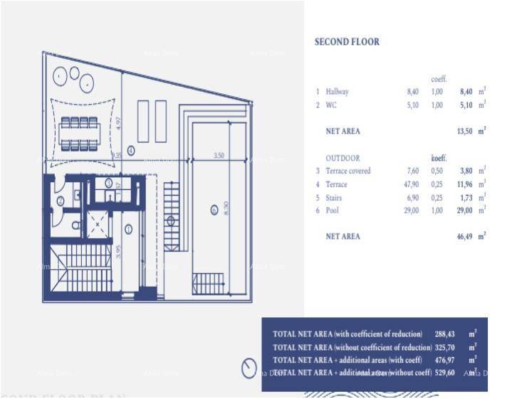 Neto površina vile od 500,59 m2 uključuje,