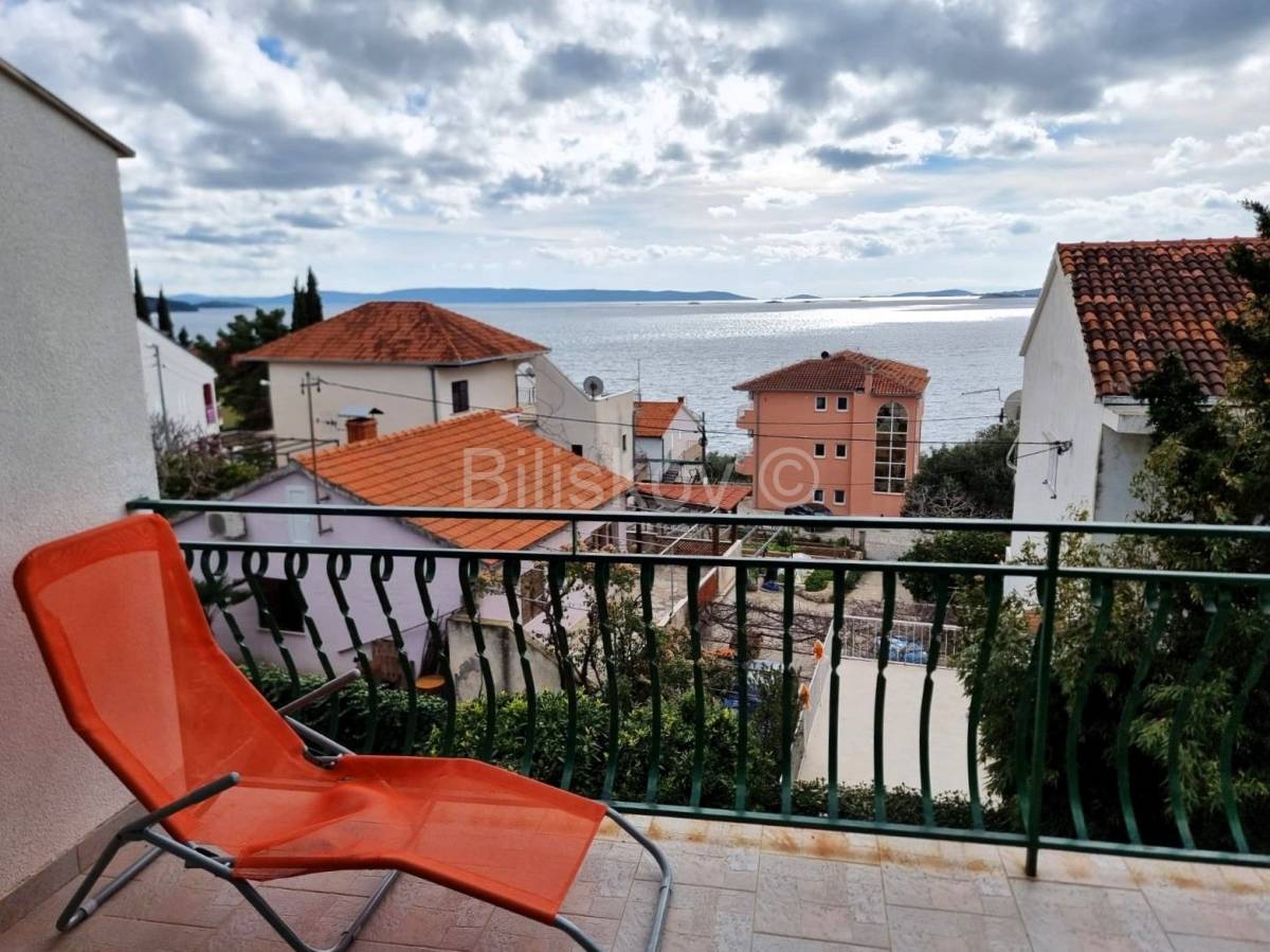 Kuća je podijeljena (etažirana) na tri stambene jedinice:- Suteren: Prostrani studio apartman opremljen dnevnim boravkom, blagovaonicom, kuhinjom, kupaonicom te natkrivenom terasom.- Prizemlje: Stan s dnevnim boravkom, blagovaonicom, kuhinjom, spavaćom sobom, kupaonicom i natkrivenom terasom.- Prvi kat: Stan s dnevnim boravkom, blagovaonicom, kuhinjom, spavaćom sobom, kupaonicom te natkrivenom i nenatkrivenom terasom s prekrasni otovrenim pogledom na more i okolicu.