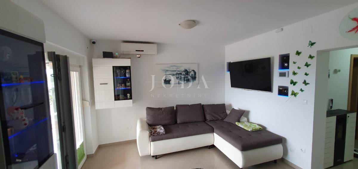 Prodajemo apartman u prizemlju manje stambene zgrade. Sastoji se od dvije spavaće sobe, kuhinje sa blagovaonom, dnevnog boravka, hodnika i terase sa prekransim pogledom na more.Unutar okućnice nalazi se parking u vlasništvu te bazen i roštilj na korištenje. Lokacija idealna za odmor od gradske vreve.