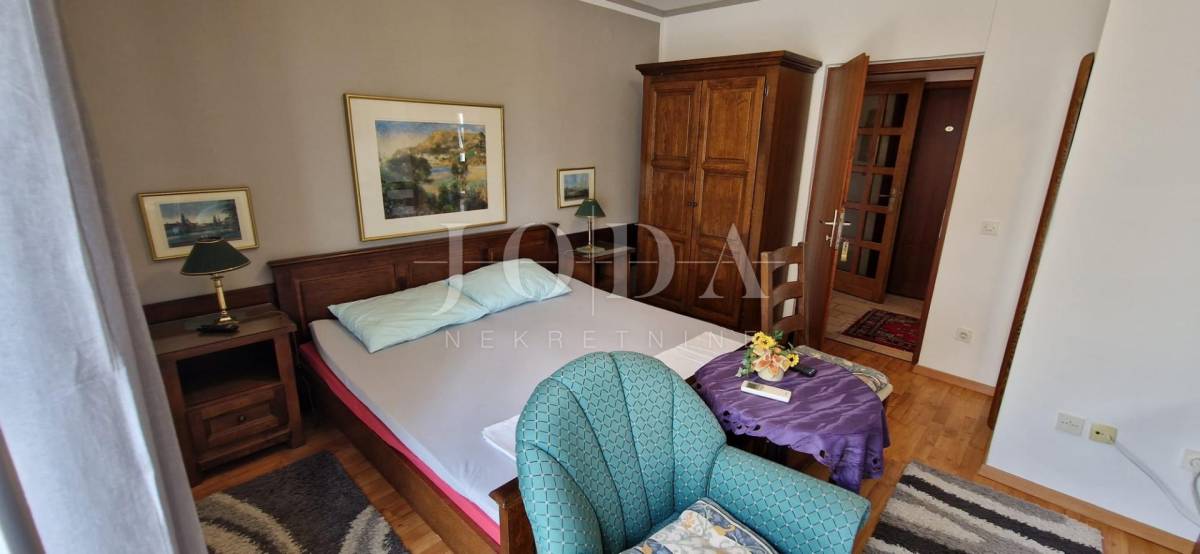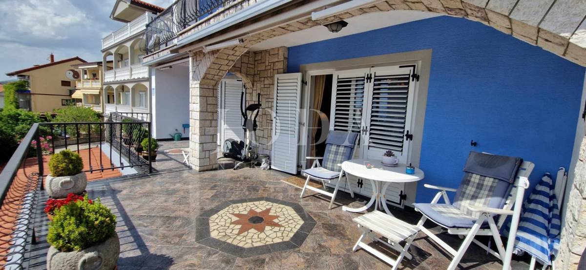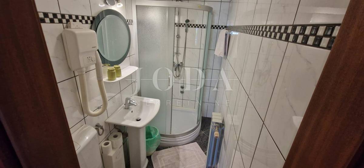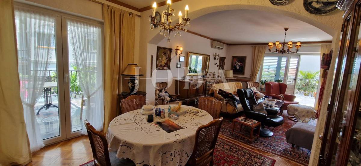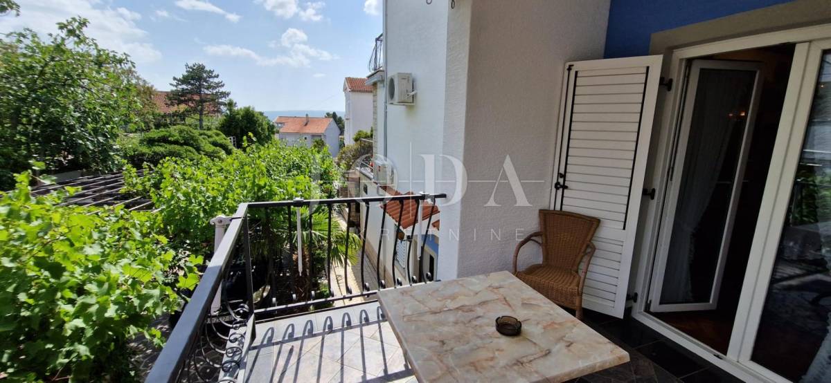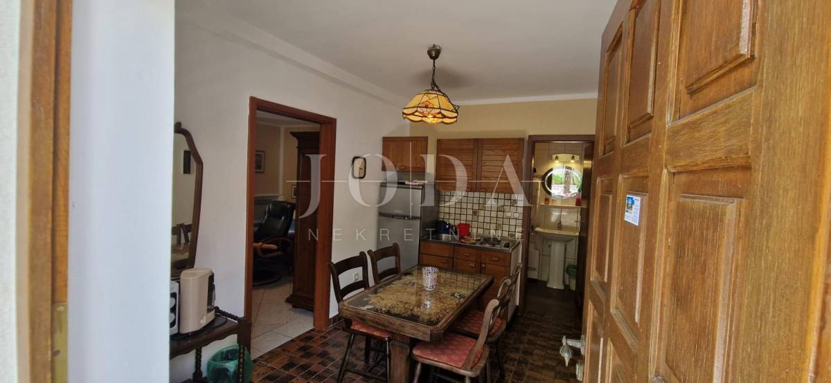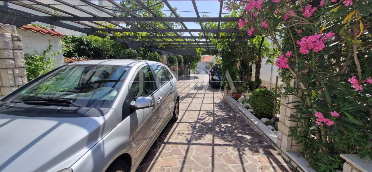 Prodajemo prekrasnu apartmansku villu na 4 etaže, udaljenu 300 m od mora. U prizemlju su 2 apartmana sa velikim terasama, kuhinja koja je dugi niz godina služila za spremanje doručka za goste, blagovaona i terasa koja može ugostiti 20 ljudi, zatim ostava sa praonicom rublja te kotlovnica sa sustavom grijanja i spremnikom za toplu vodu.