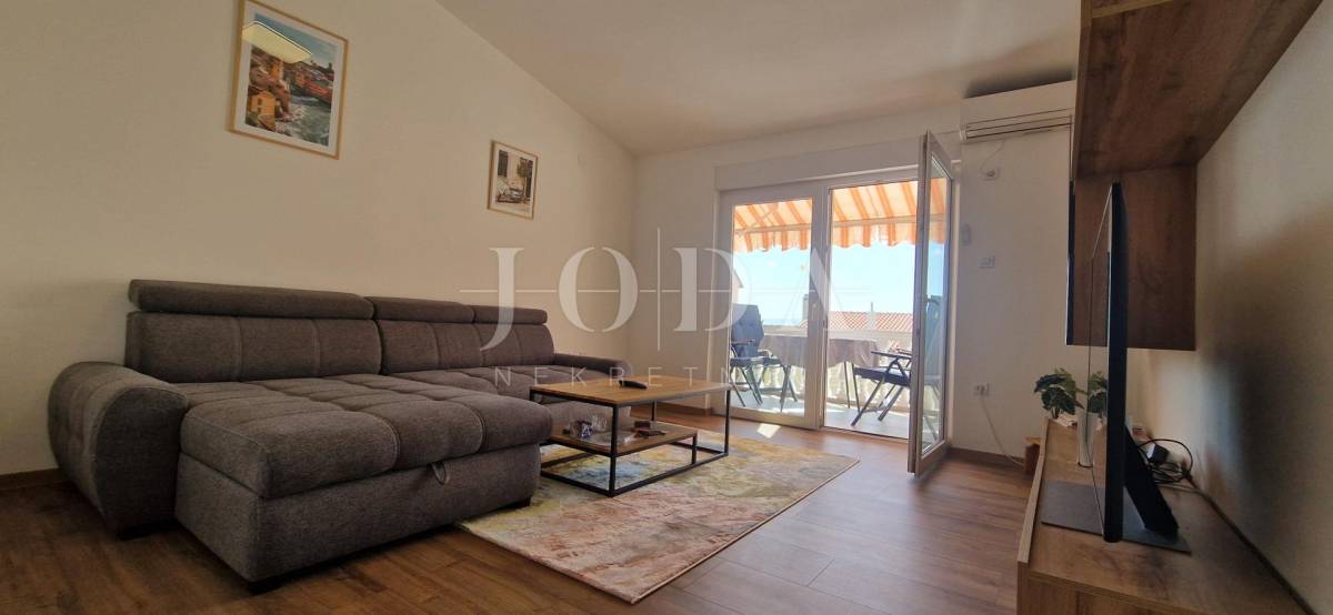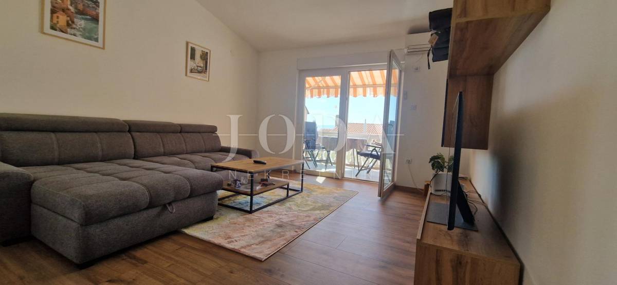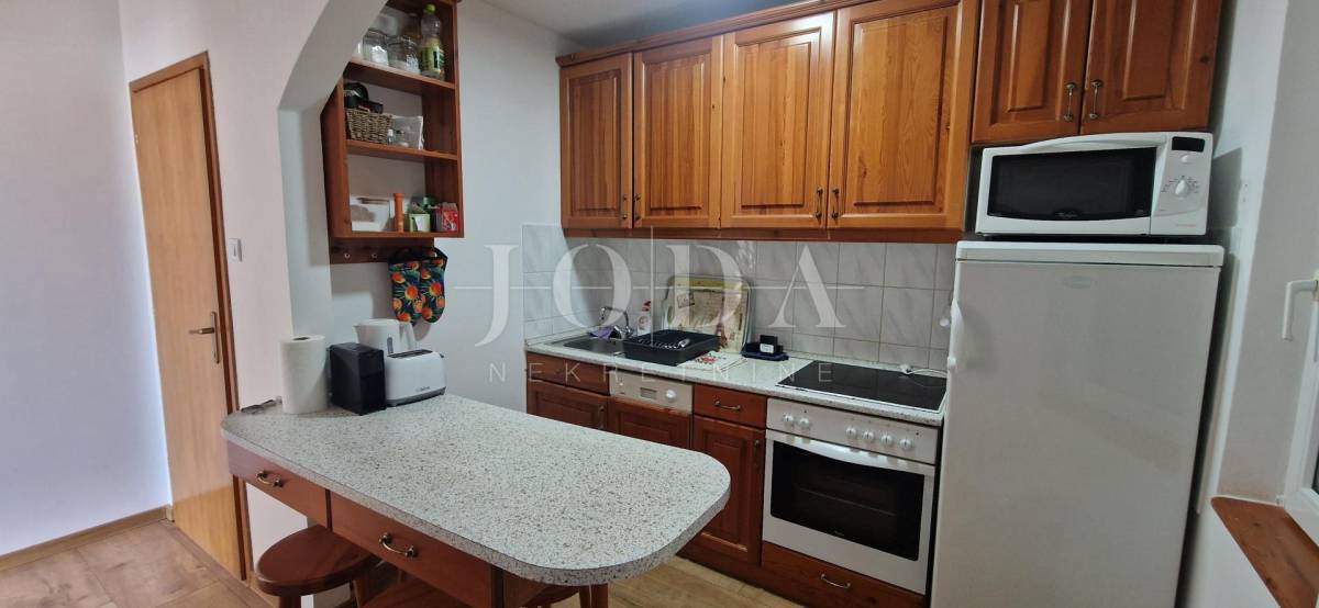 Predstavljamo stan na izuzetnoj lokaciji nedaleko od mora. Stan se sastoji od hodnika, kupaonice, spavaće sobe, kuhinje s blagovaonicom i dnevnim boravkom, ostave te ima dva balkona na sjevernoj i južnoj strani s prekrasnim pogledom na more. Dodatno spremište koje se nalazi unutar okućnice nudi dovoljno prostora za odlaganje stvari, dok vlastiti parking osigurava praktičnost u srcu turističke sezone. Ovaj stan, iako nije novogradnja, sa sobom donosi toplinu vremena i suptilnu eleganciju, pružajući vam savršen spoj tradicionalnog i suvremenog primorskog načina života.