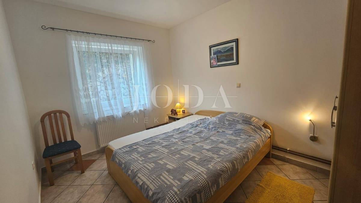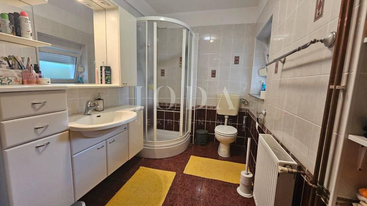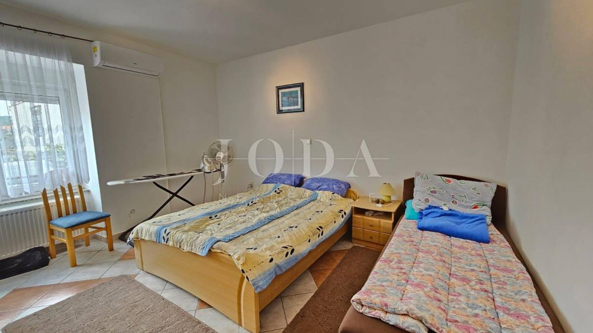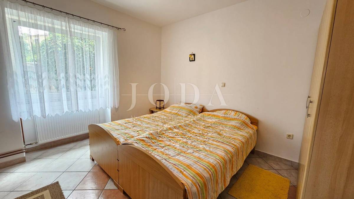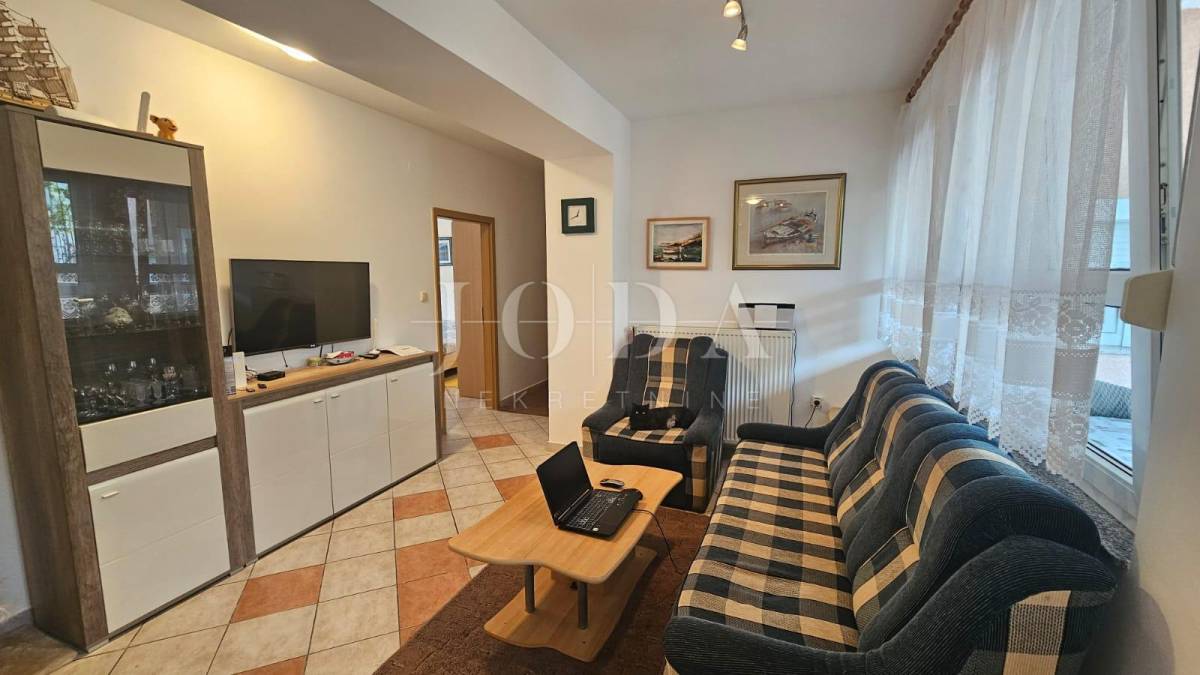 U prizemlju je stan sa tri spavaće sobe,kuhinjom ,dnevnim boravkom te kupaonicom ,klimatiziran i sa etzažnim centralnim grijanjem.