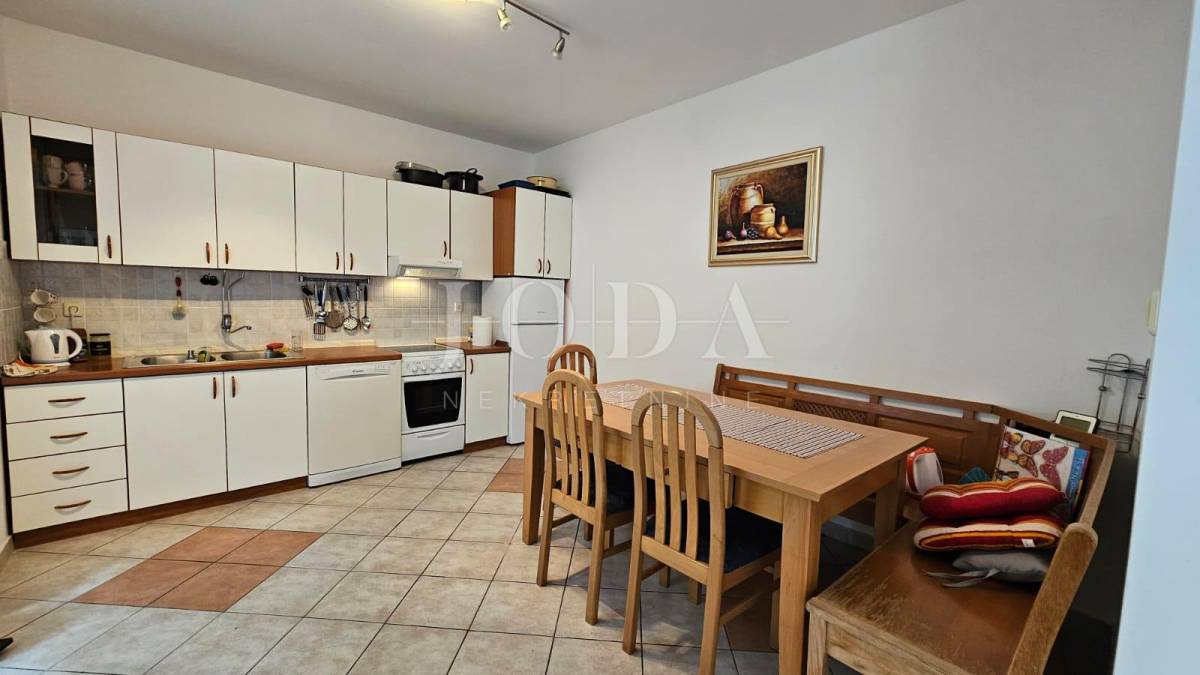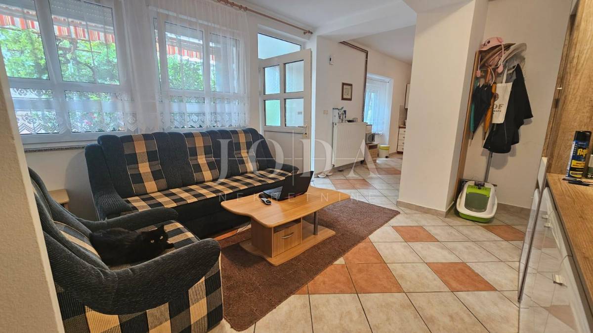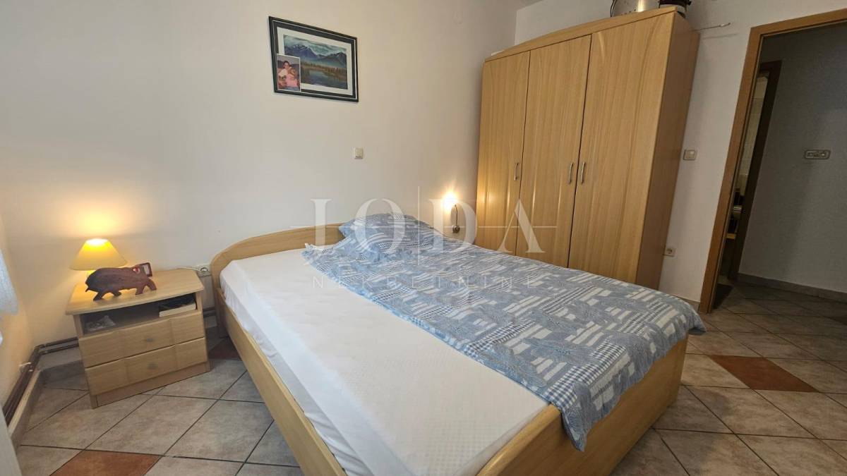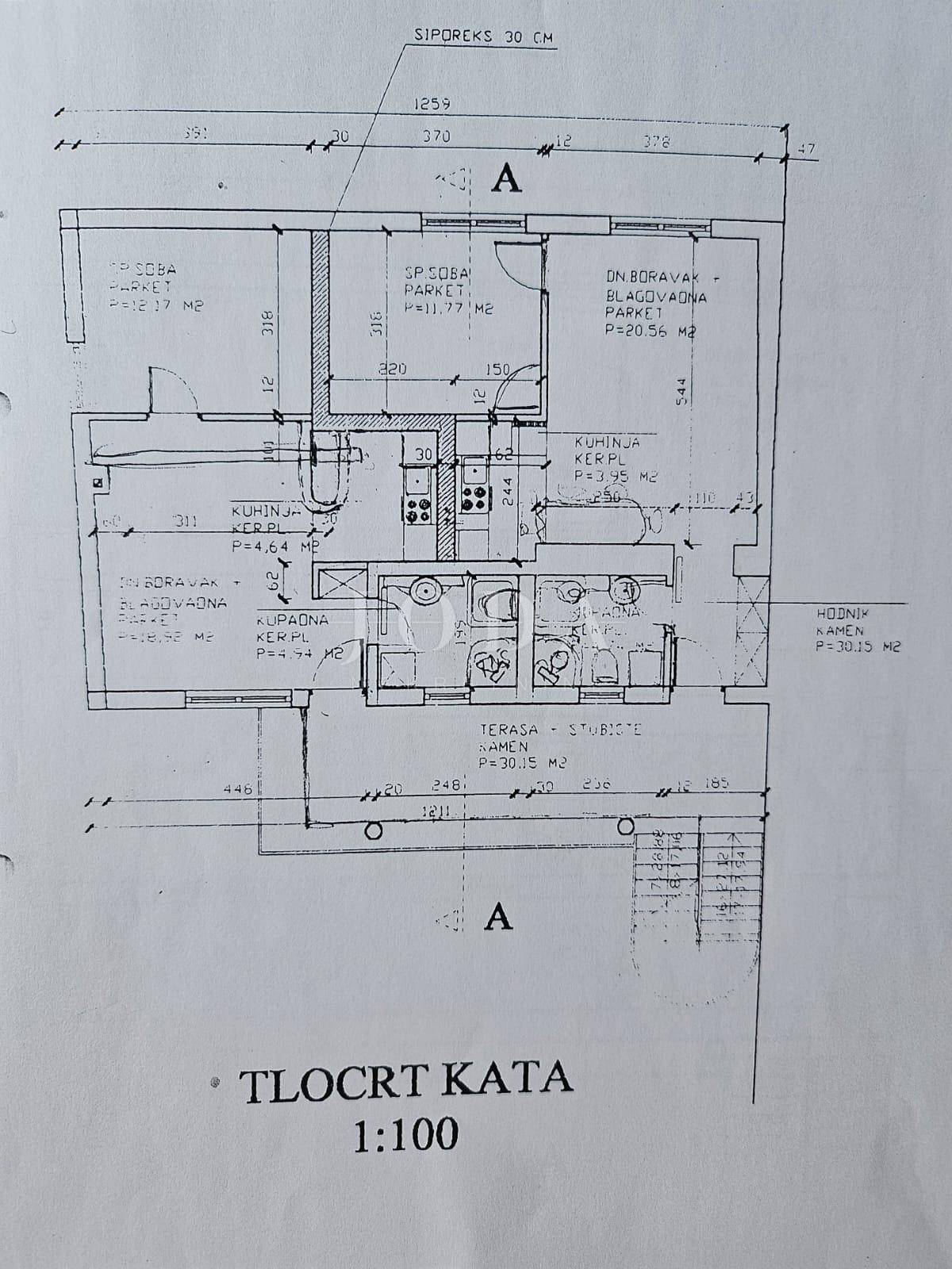 U prizemlju je stan sa tri spavaće sobe,kuhinjom ,dnevnim boravkom te kupaonicom ,klimatiziran i sa etzažnim centralnim grijanjem.