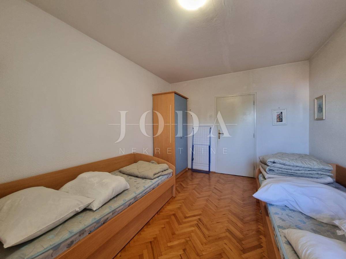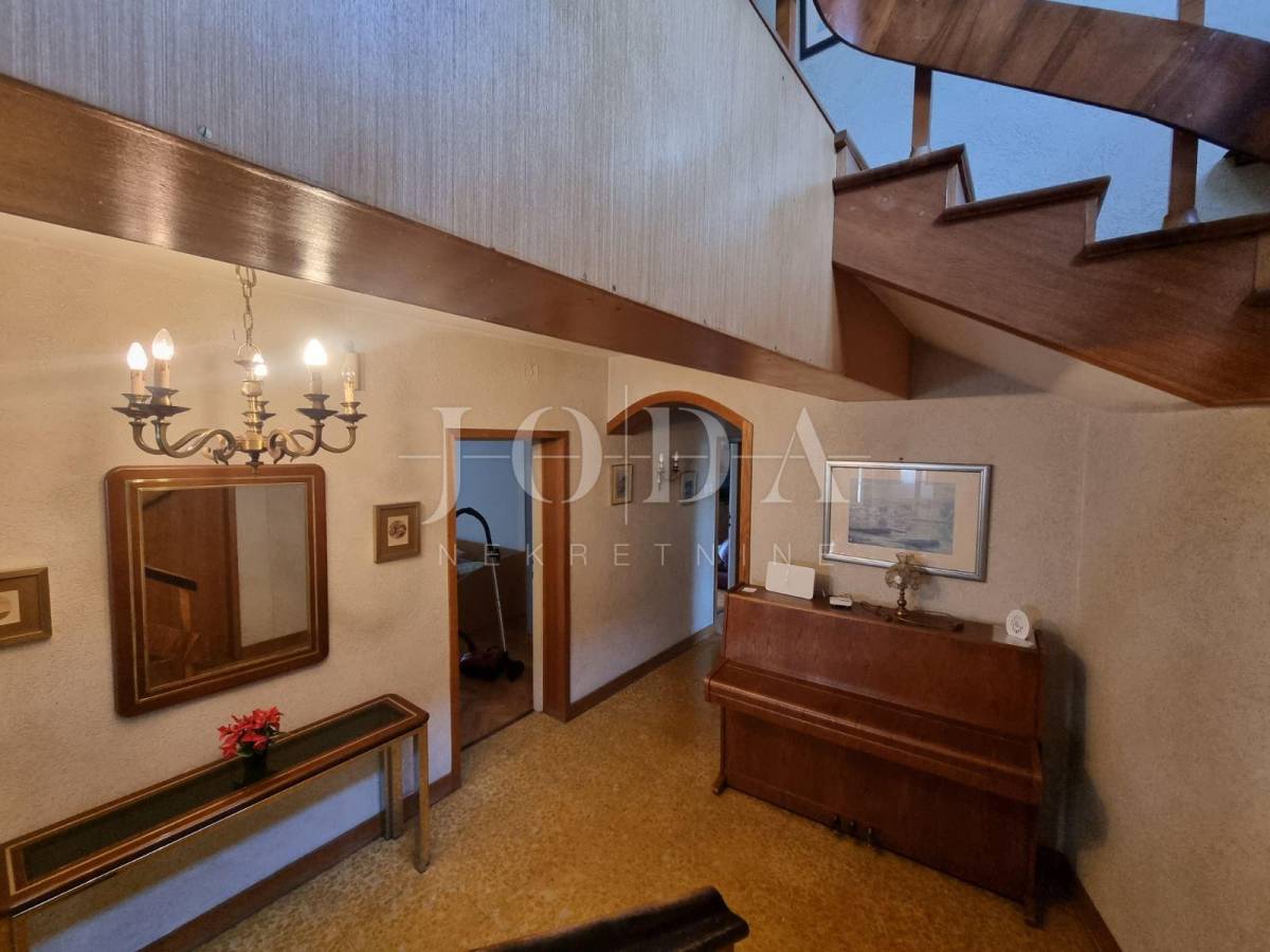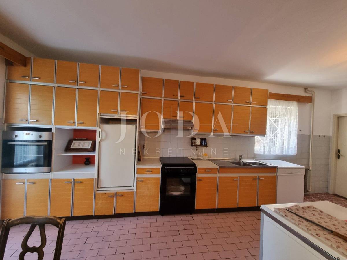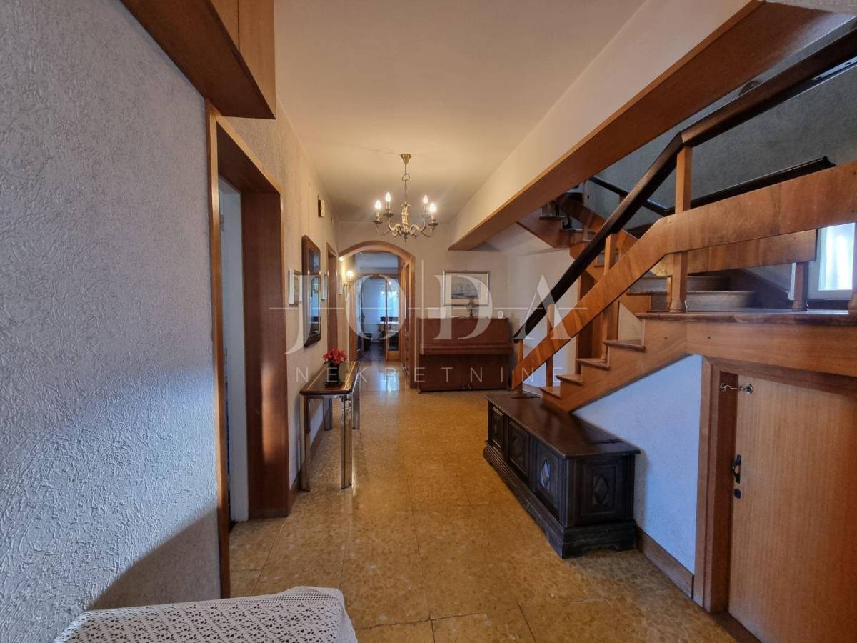 U prizemlju su garaže i spremišta,dok su prvi i drugi kat veliki obiteljski dvoetažni stan. Unutar prostrane okućnice nalaze se parkirna mjesta za više automobila, vrt i roštilj. Mogućnost gradnje dodatnih sadržaja. Puno svjetla i dobar razmještaj soba omogućuje prenamjenu i u objekt sa 4 apartmana ili više ukoliko bi se bavili turističkim najmom.