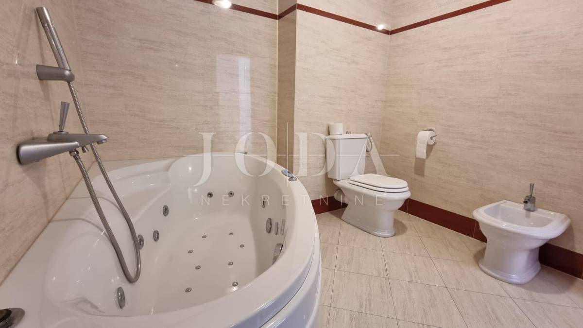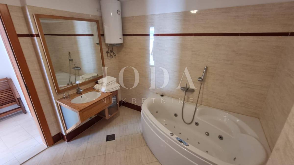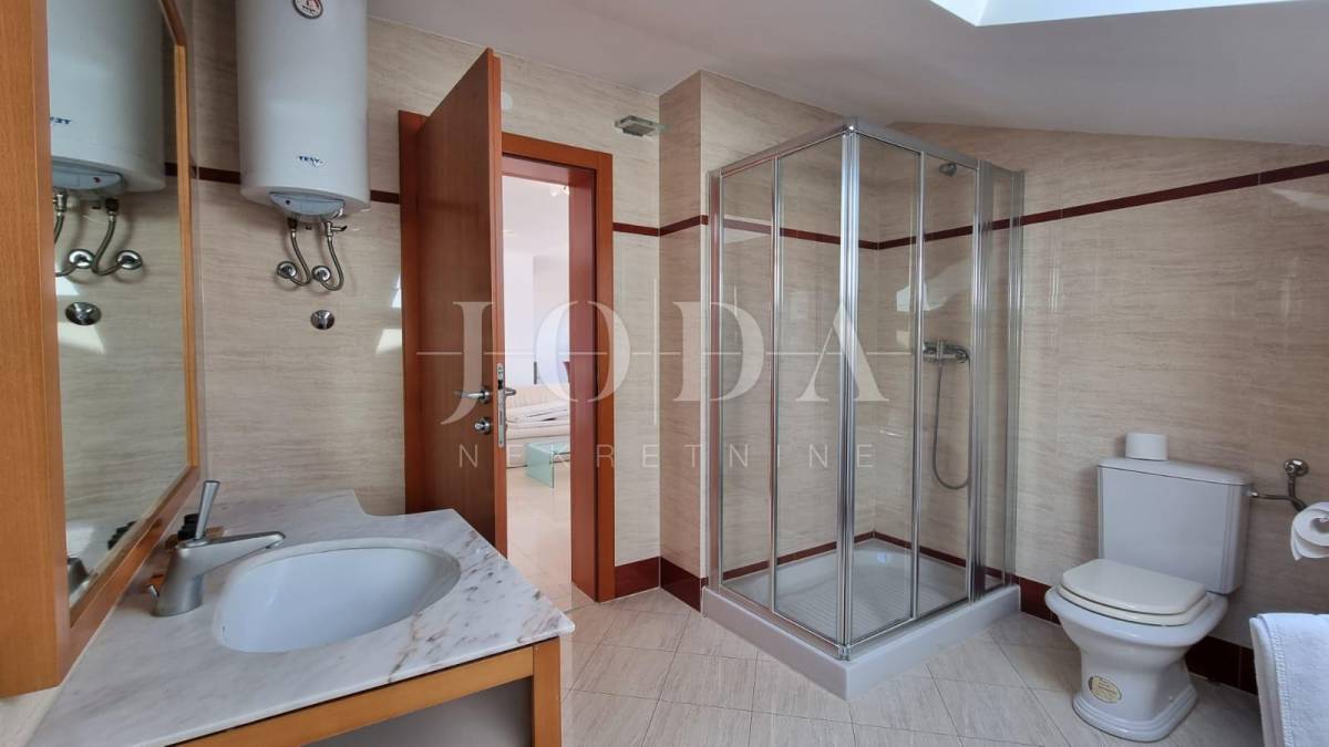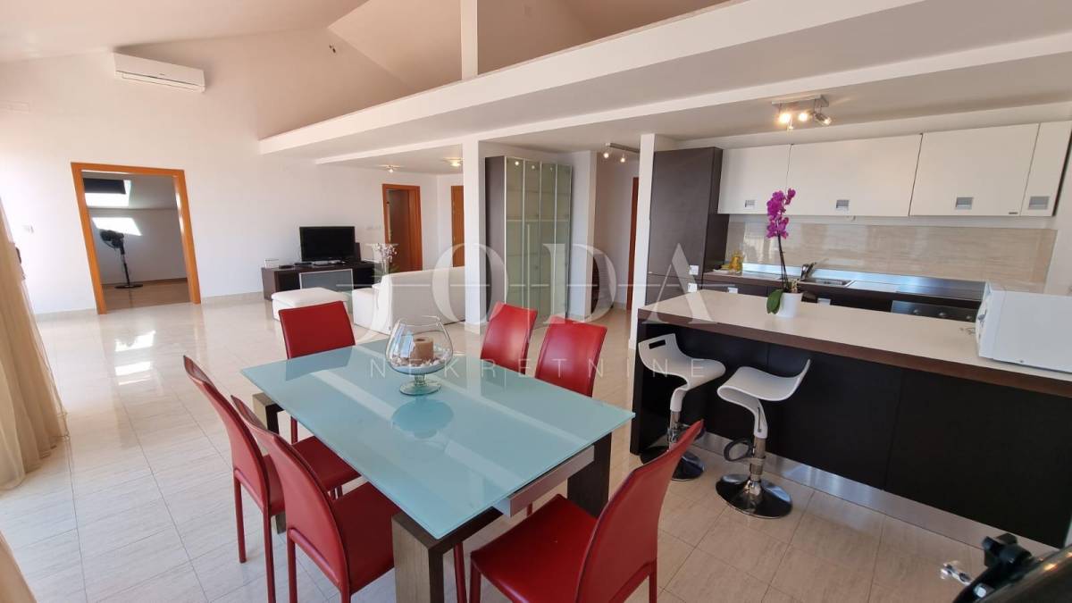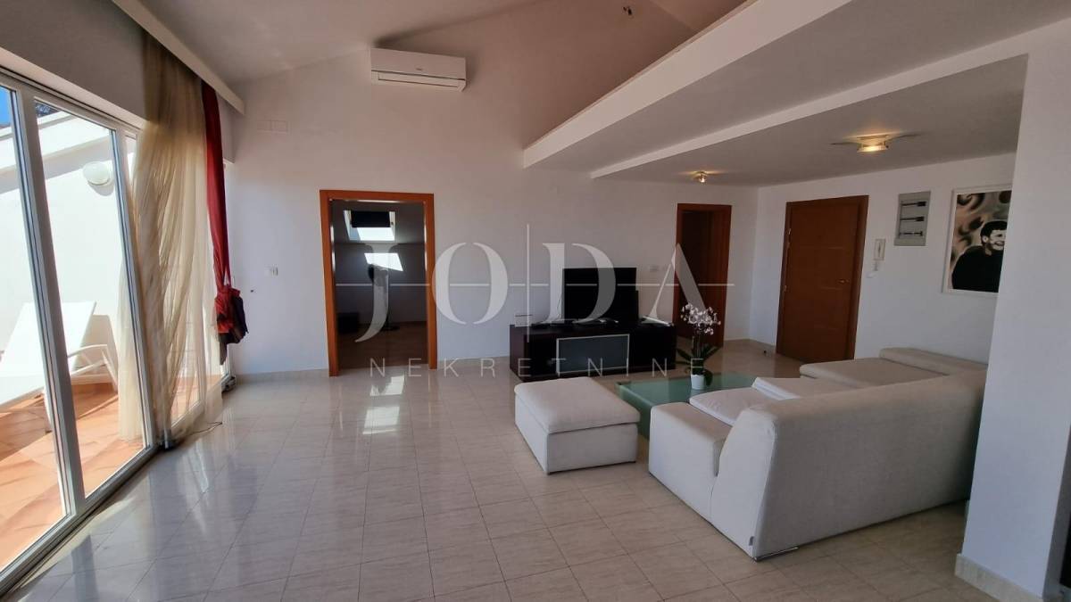 Dvije spavaće sobe (jedna sa velikim utility ormarom), dvije kupaonice, veliki otvoreni koncept dnevnog boravka i kuhinje te otvorene terase sa panoramskim pogledom na more.