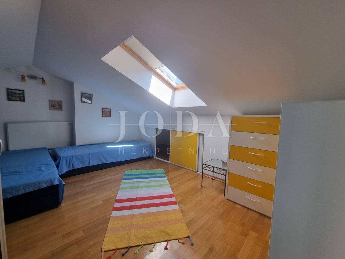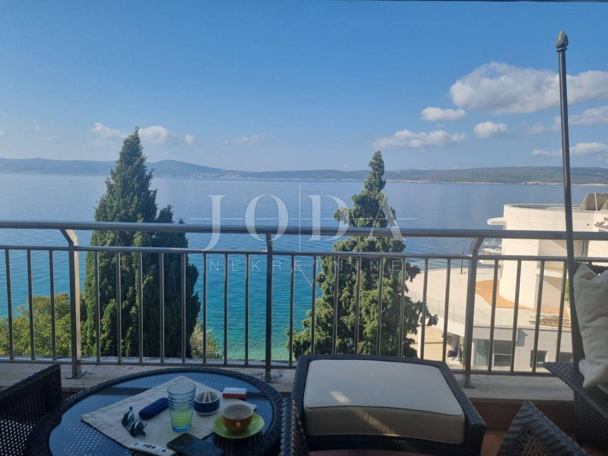 Prodajemo stan na vrhunskoj lokaciji, prvi red od mora. Sastoji se od pet spavaćih soba od kojih se dvije nalazi na galeriji, open-space prostora (kuhinja, blagovaona i dnevni boravak), dvije kupaone, spremišta i prostrane terase sa prekrasnim pogledom na more, mjesto i otok Krk. Nekretnina je u potpunosti opremljena i namještena i kao takva se i prodaje. Stanu pripada jedno parkiirno mjesto. Idealna za odmor i uživanje!