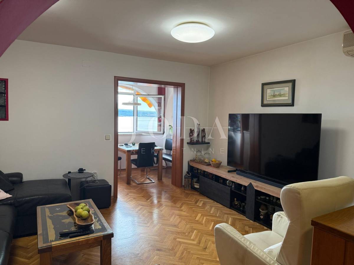 Prodaje se stan na 1. katu u neposrednoj blizini centra, 3S+DB, ukupne površine 72 m2. Iz strana se pruža otvoren pogled na more i na okolinu. Stan ima centralno etažno grijanje na struju koje se uključuje pametnim telefonom na daljinu, opremljen sa klima uređajem. Stanu pripada parkirno mjesto od 11 m2. Prodaje se djelomično namješten.