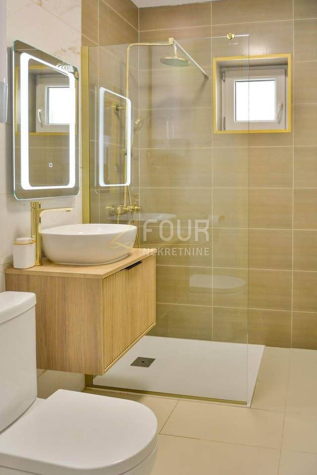 Nekretnina je u potpunosti adaptirana, pri čemu su zamijenjene elektroinstalacije te vodovodne i kanalizacijske instalacije, ugrađena nova klima, postavljena moderna kuhinja i kupaonica vrhunske kvalitete s elegantnim detaljima. Cijeli stan opremljen je novim, nekorištenim namještajem i prodaje se u potpunosti namješten, kao na fotografijama, bez potrebe za ikakvim dodatnim ulaganjima. Interijer je uređen u toplim i neutralnim tonovima, s obiljem prirodnog svjetla koje dodatno naglašava prozračnost prostora i osjećaj blizine mora.