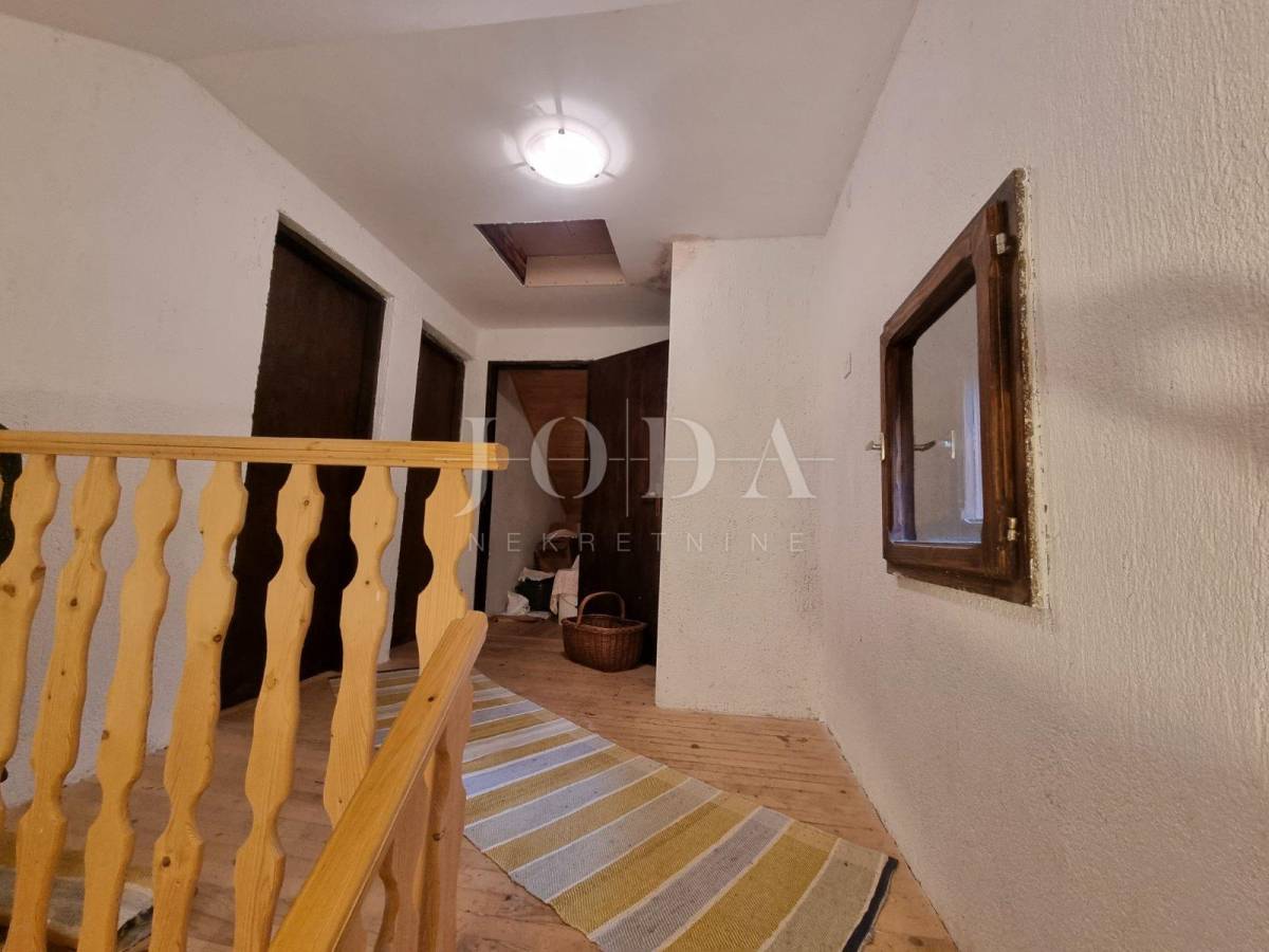 Prodajemo kuću na parceli od 1770m2 u naselju Alan koje je u sastavu grada Senja. Kuća se sastoji od suterena, prizemlja i potkrovlja. U suterenu se nalaze dvije prostorije koje se koriste kao spremišta. Vanjskim stepenicama ide se na kat gdje se nalazi kuhinja sa blagovaonom, dnevni boravak, hodnik, kupaona i balkon. Unutarnjim stepenicama ide se u potkrovlje gdje se nalaze tri spavaće sobe. Kuća ima potencijala, a zbog svoje prostrane okućnice ima mogućnost gradnje dodatnih sadržaja. Nekretnina je udaljena 14km do Klenovice i 16km do grada Senja.